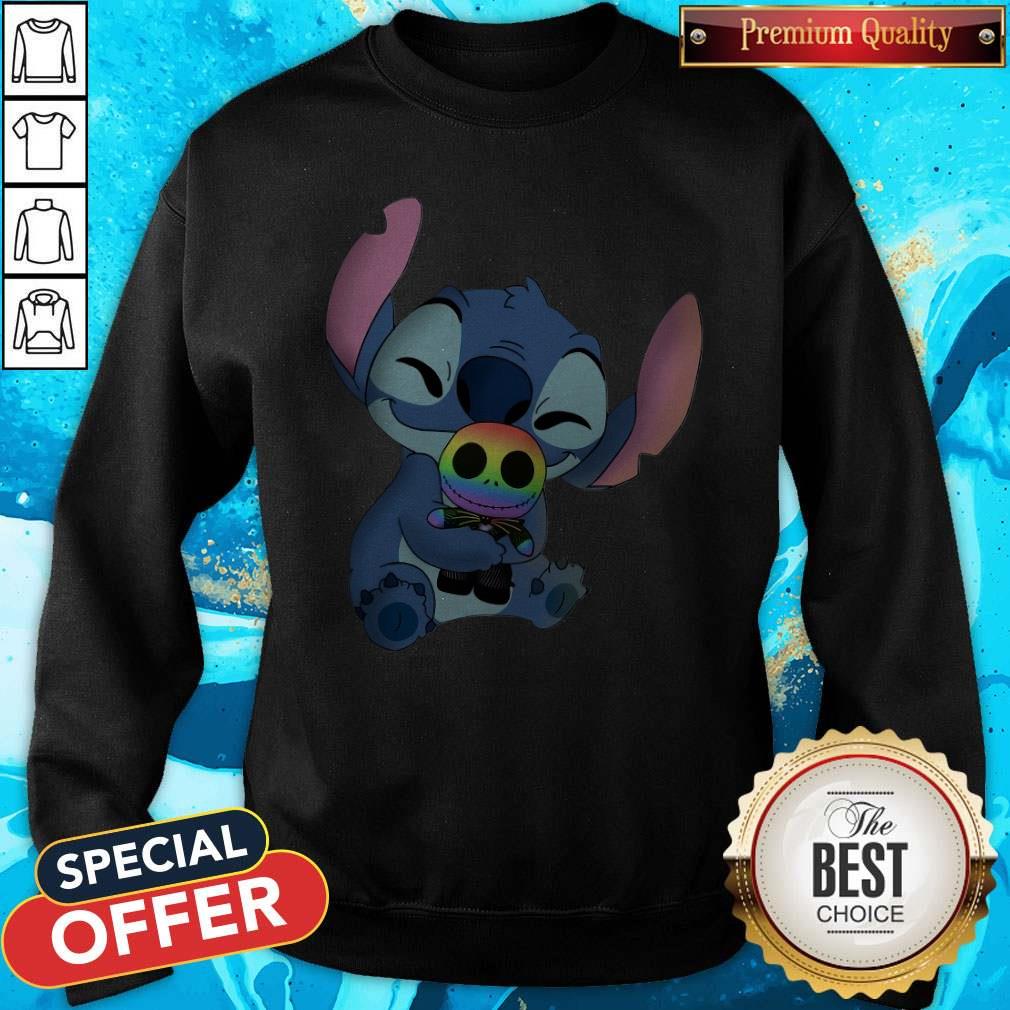 Premium Baby Stitch Hug Baby Jack Skellington LGBT Shirt