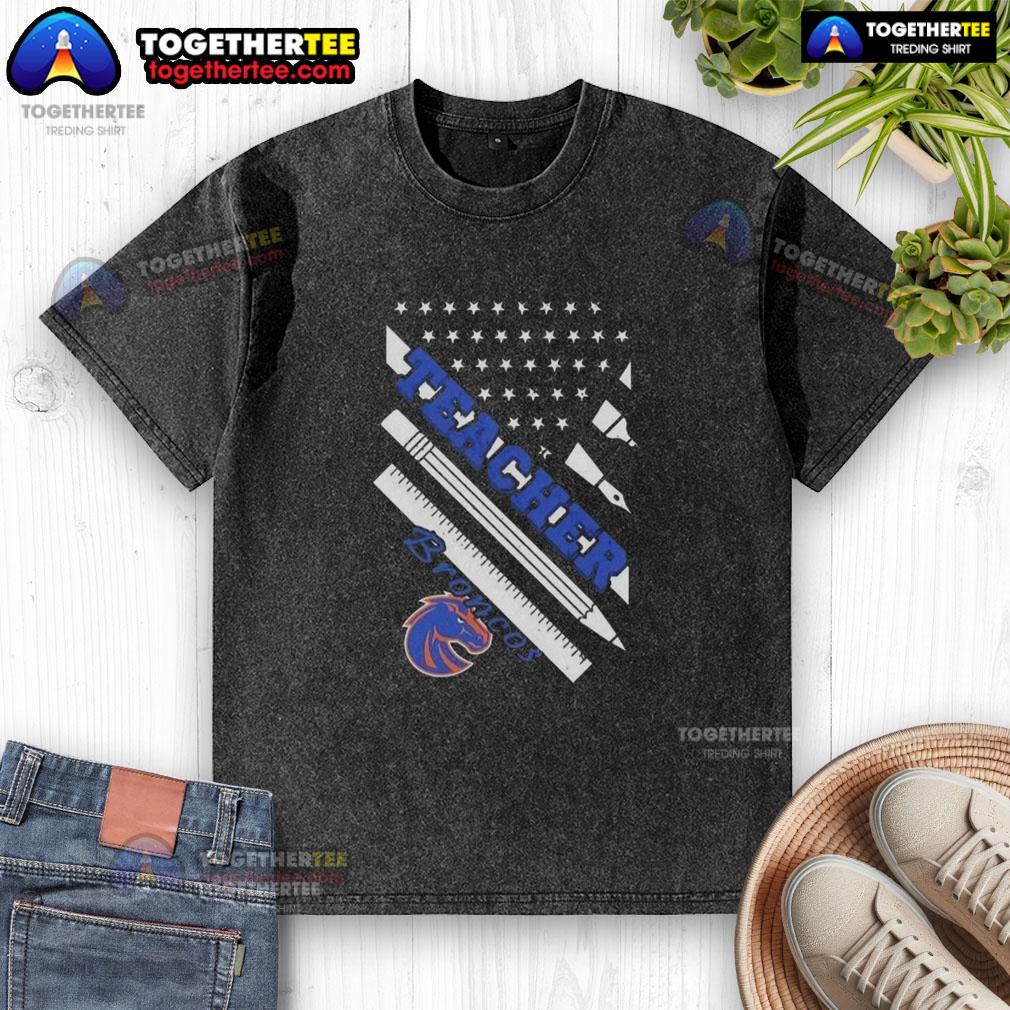 Premium Boise State Broncos X Teacher American Flag T-Shirt