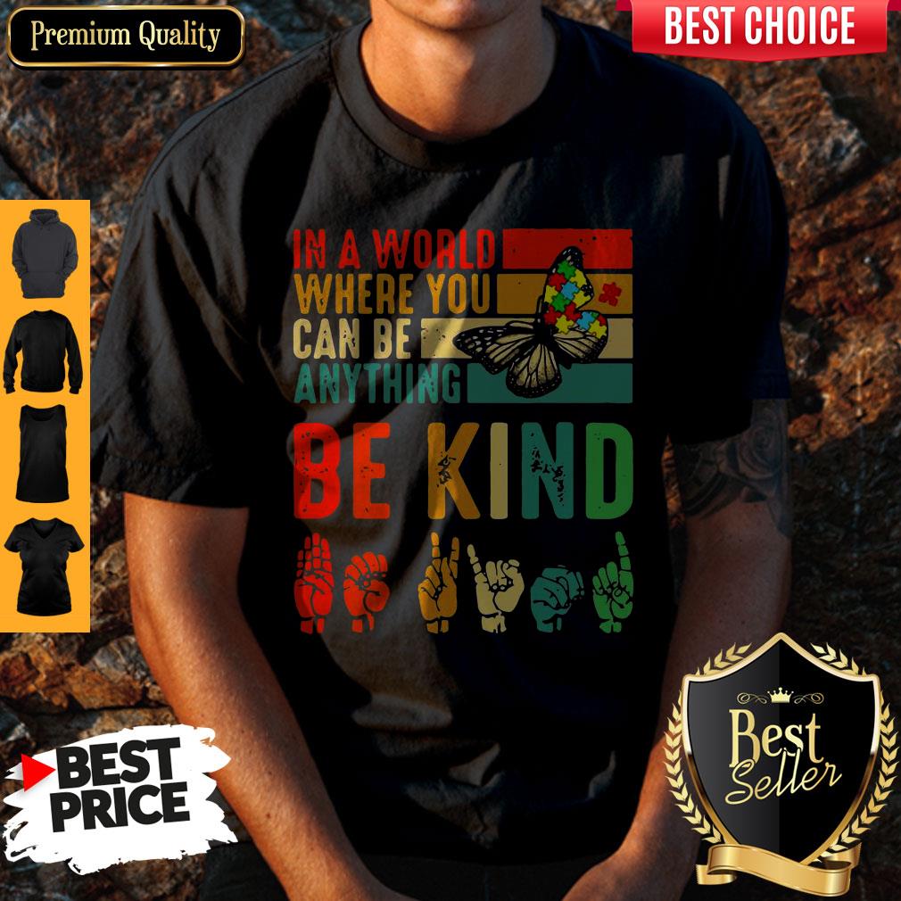 Premium Butterfly Autism Be Kind In World Where You Can Be Anything Shirt