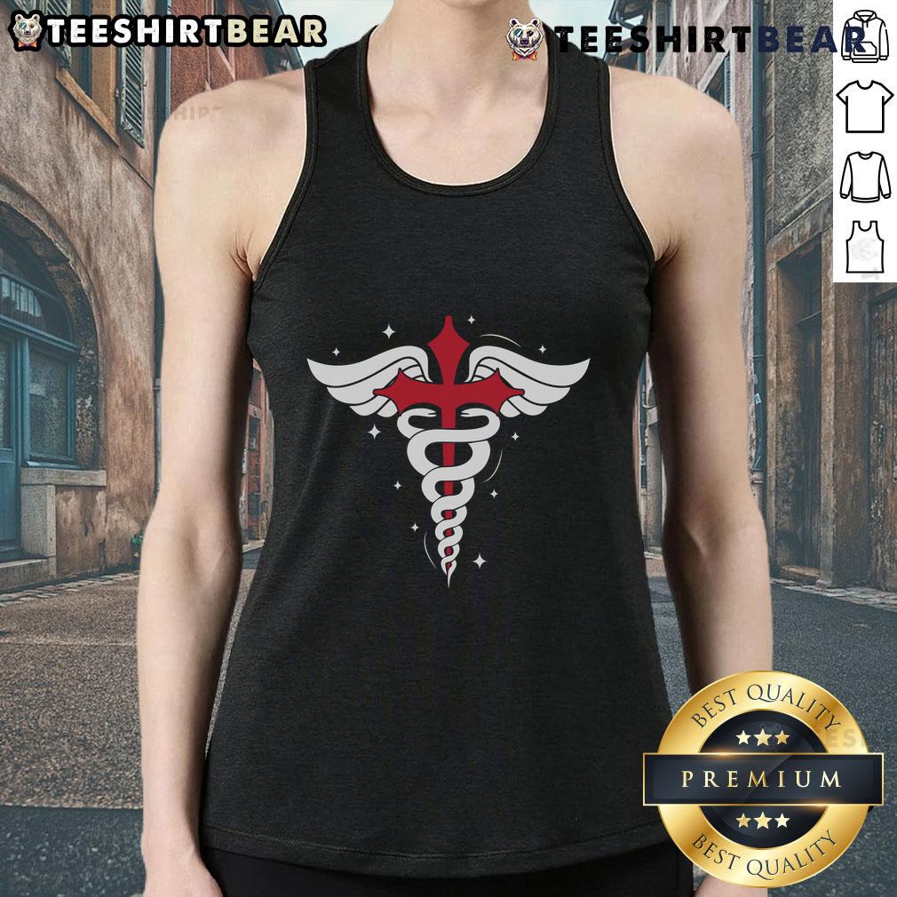 Premium Christian Nurse Caduceus Symbol Red Cross Angel Wings Serpent Staff Medical T-Shirt