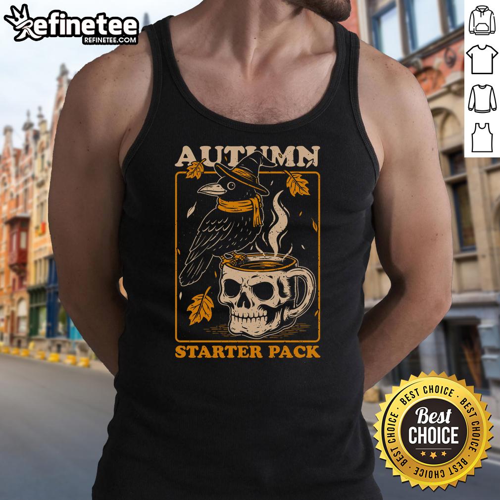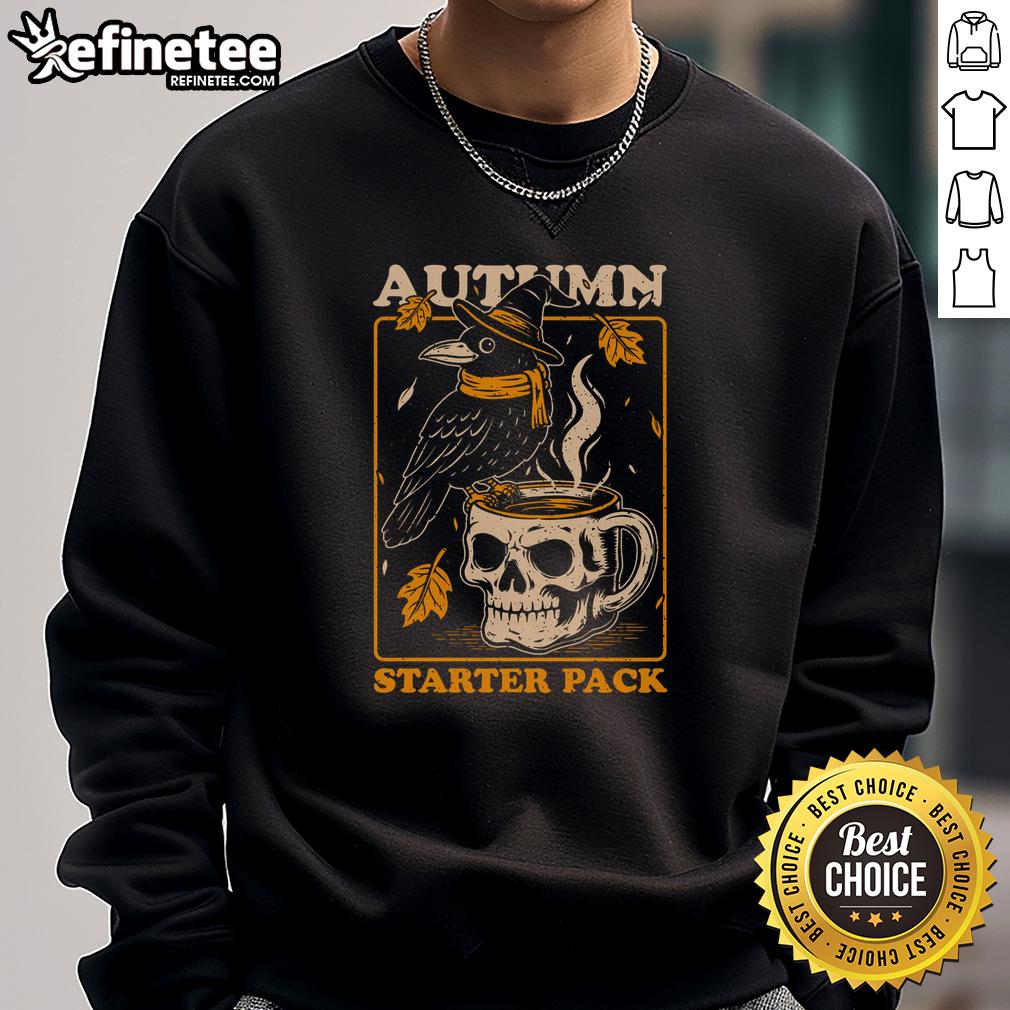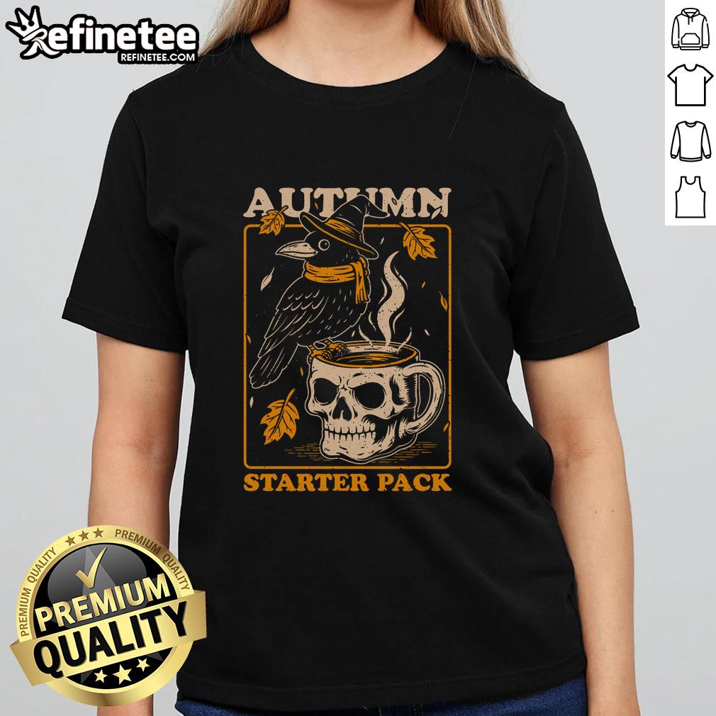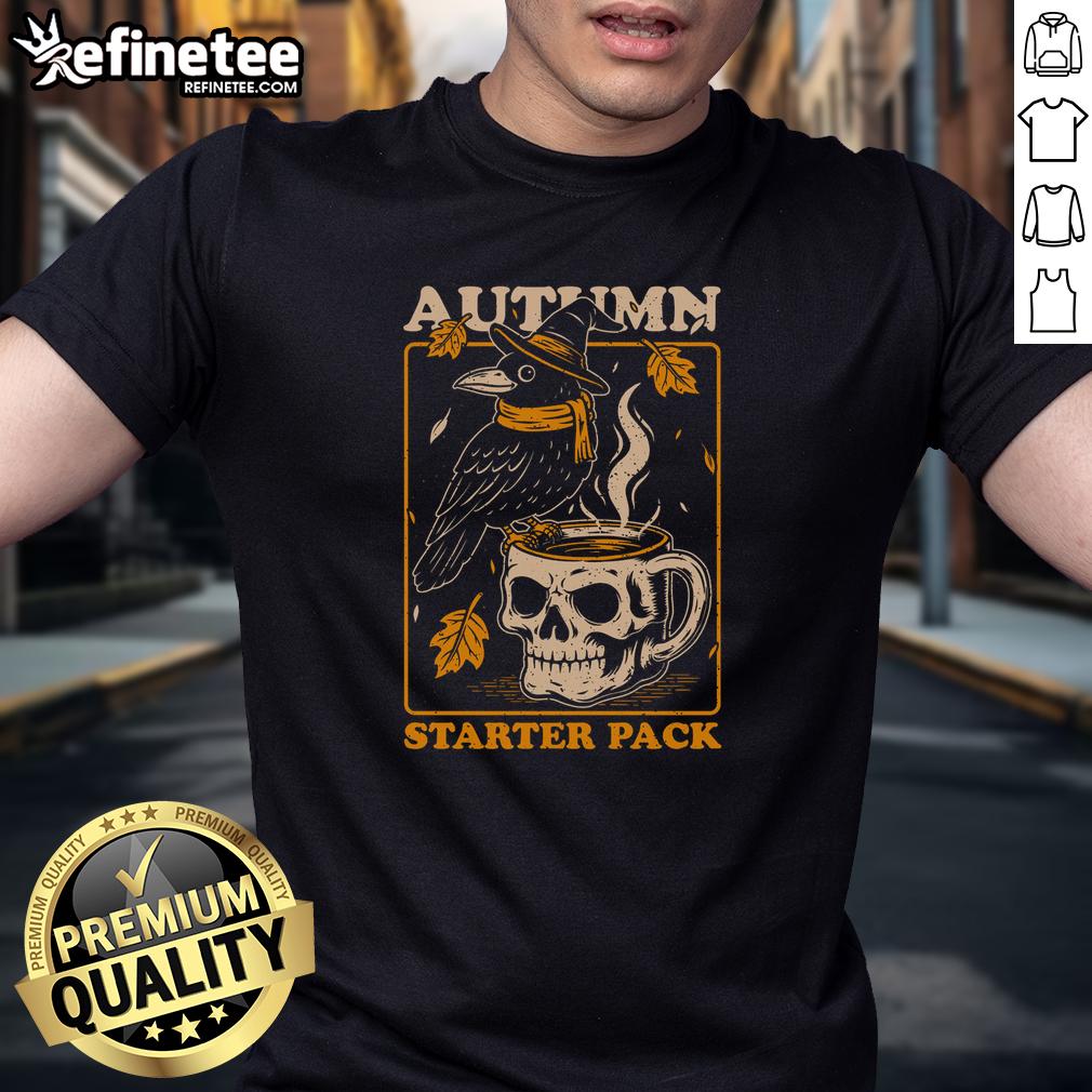 Premium Crow Autumn Coffee Starter Pack Skull T-Shirt