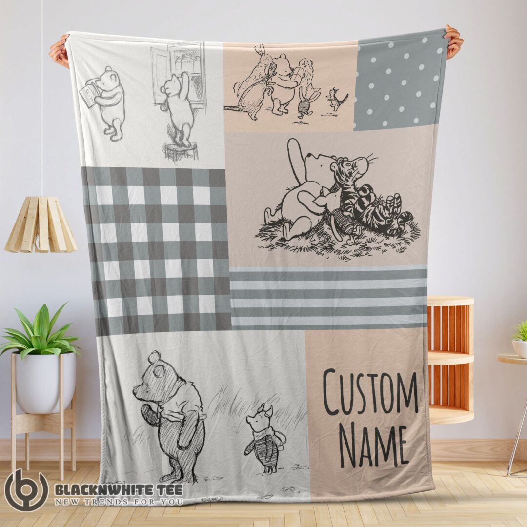 Premium Cute Classic Winnie The Pooh & Friends Sketch Blanket Fleece Customized Blanket