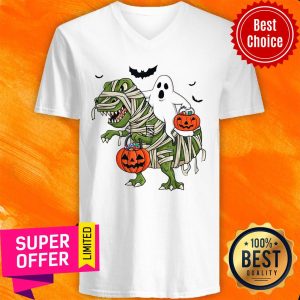 Premium Dinosaur T-rex And Ghost Halloween Pumpkin Shirt