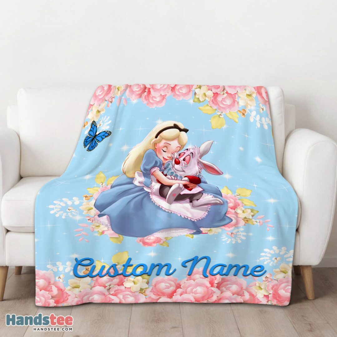Premium Disney Alice & The White Rabbit Alice In Wonderland Blanket Fleece Customized Blanket