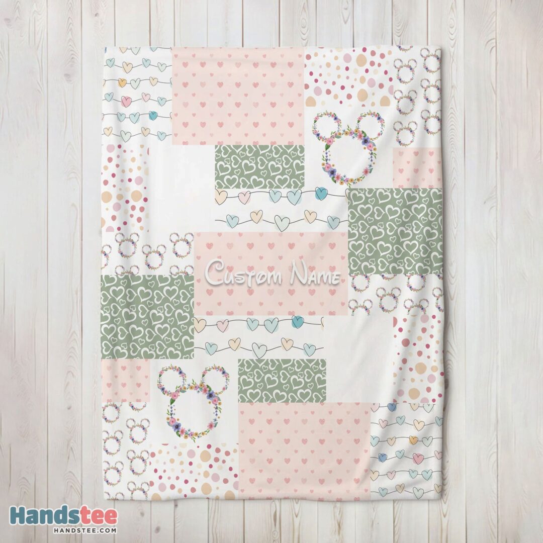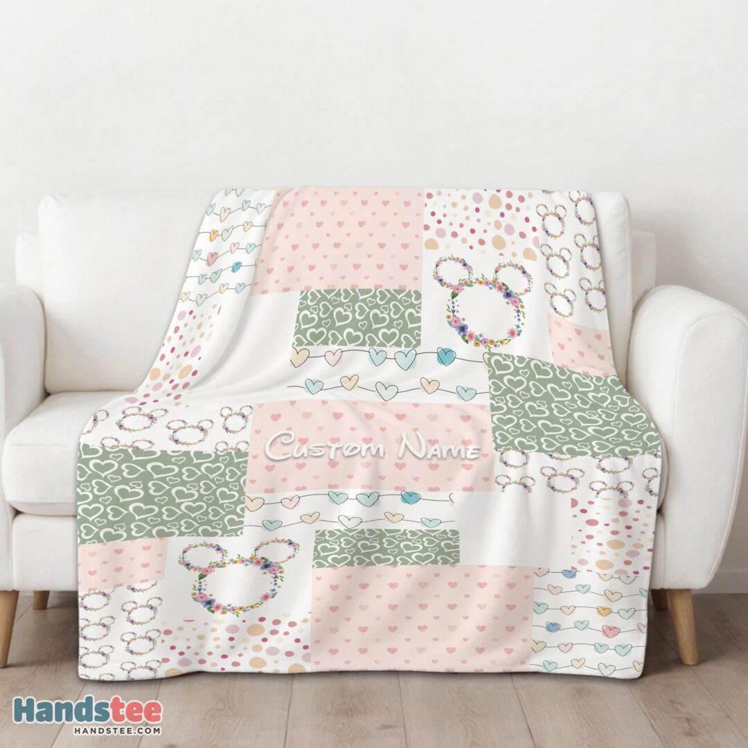 Premium Disney Mickey Logo Heart Texture Blanket Fleece Customized Blanket