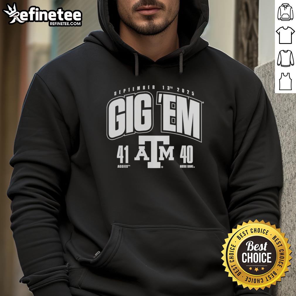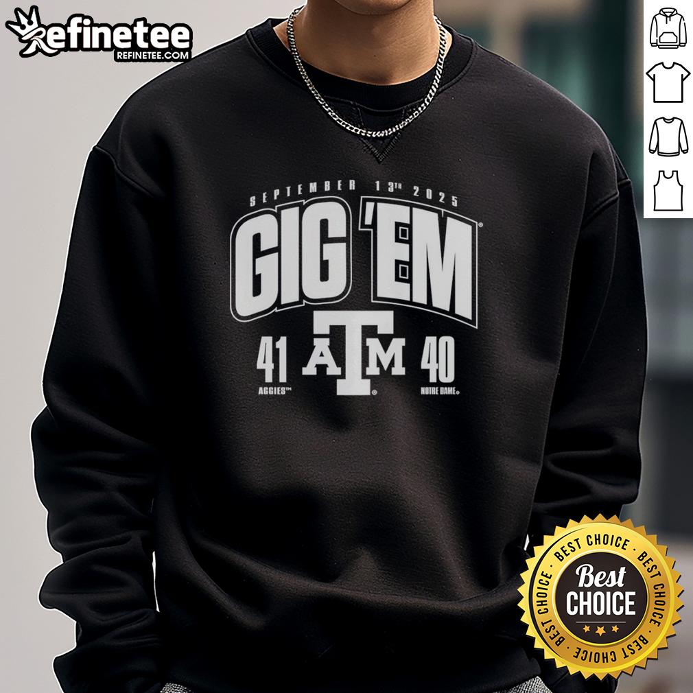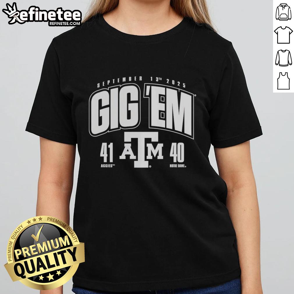 Premium Gig ‘Em Texas A And M Aggies Vs Notre Dame Fighting Irish 2025 Score 41-40 T-Shirt