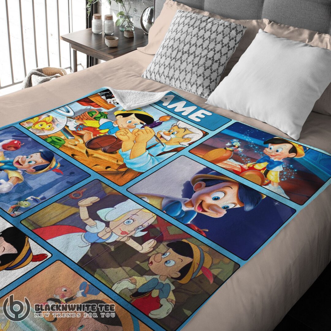 Premium Hot Disney Cartoon Pinocchio With Friends Blanket Fleece Customized Blanket