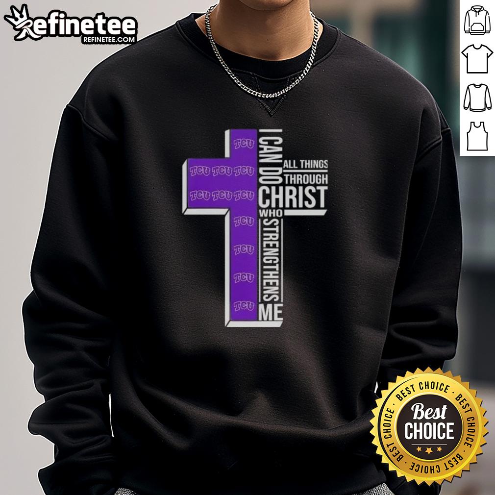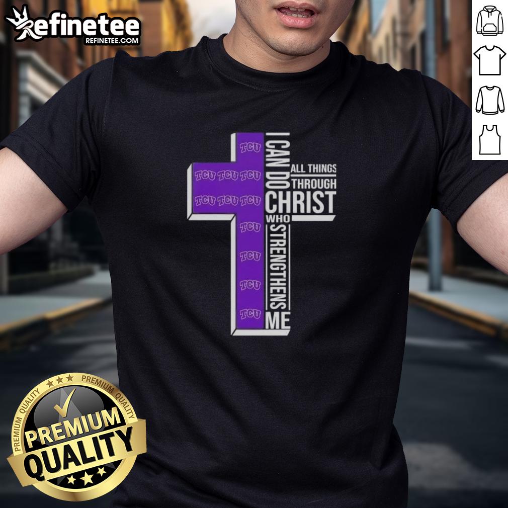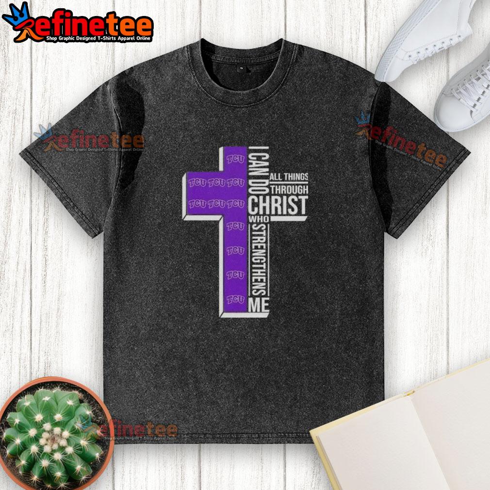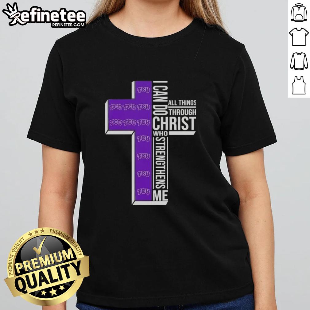 Premium I Can Do All Things Through Christ Who Strengthens Me Tcu Horned Frogs Football Cross T-Shirt
