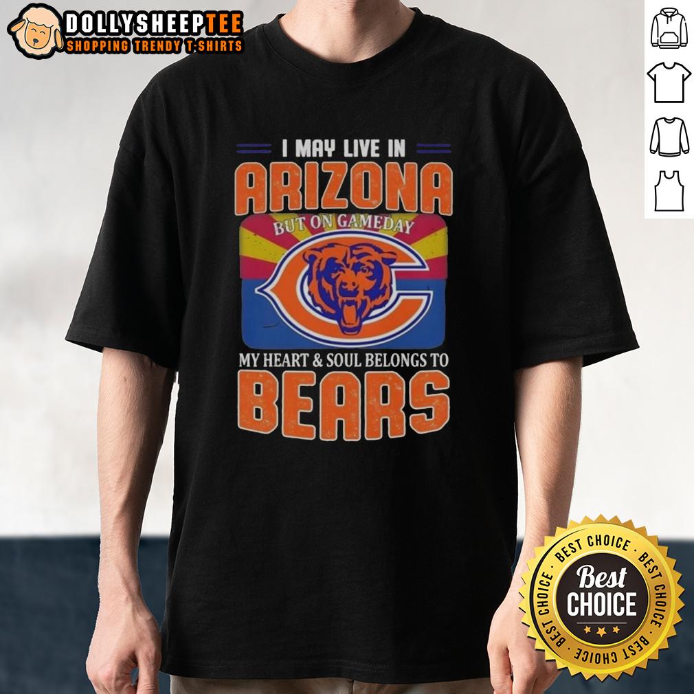 Premium I May Live In Arizona But On Gameday My Heart And Soul Belongs To Chicago Bears Football Flag T-Shirt