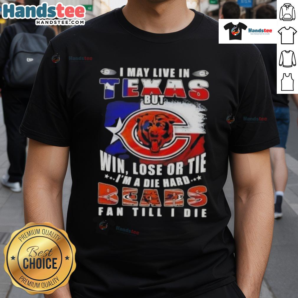 Premium I May Live In Texas But Win Lose Or Tie I’m A Die Hard Chicago Bears Fan Till I Die T-Shirt