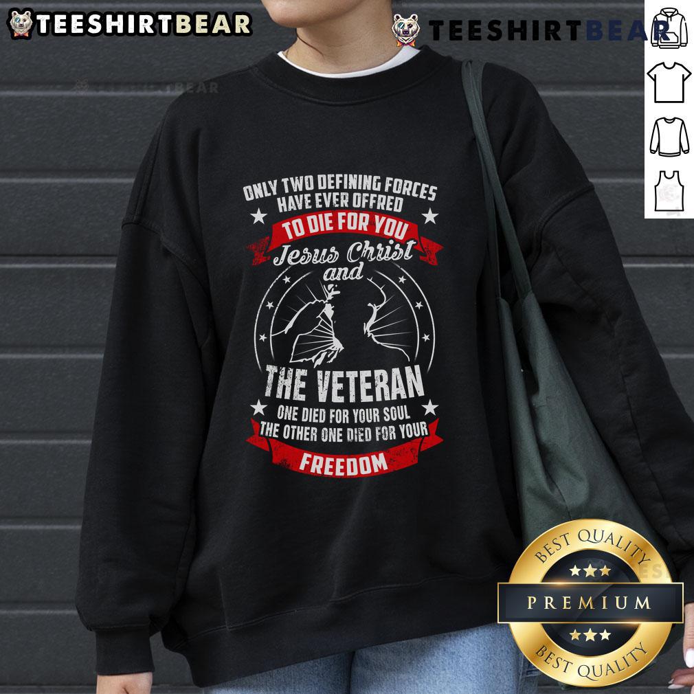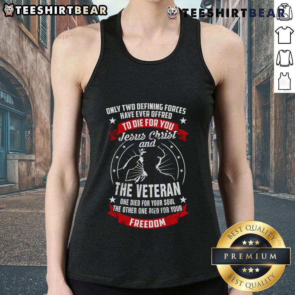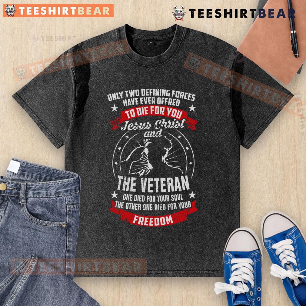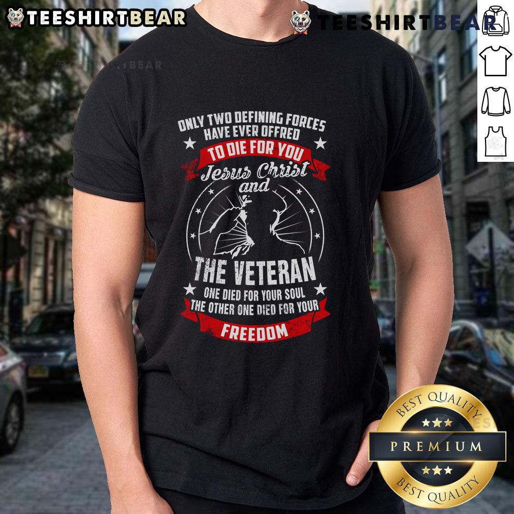 Premium Jesus Christ And The Veteran Died For Your Soul And Freedom Patriotic T-Shirt