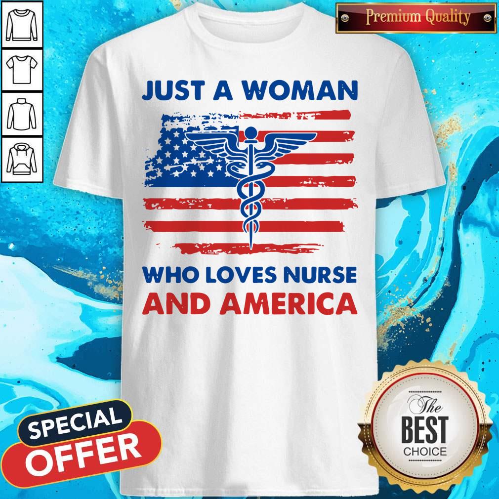 Premium Just A Woman Who Loves Nurse And America Shirt