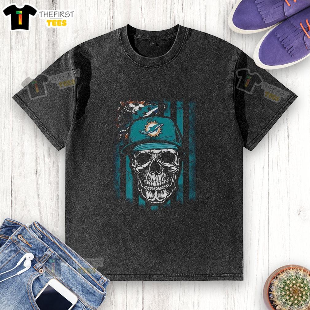 Premium Miami Dolphins NFL Skull American Flag Football Lover T-Shirt