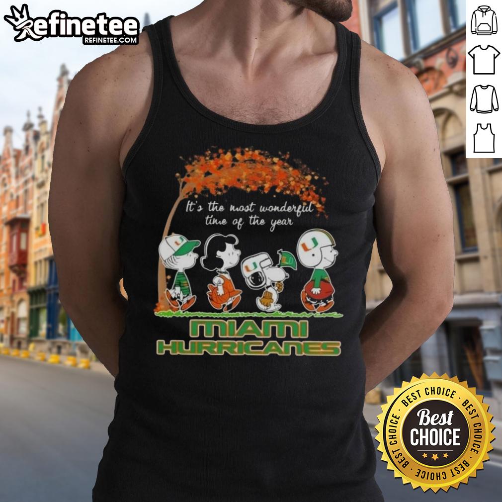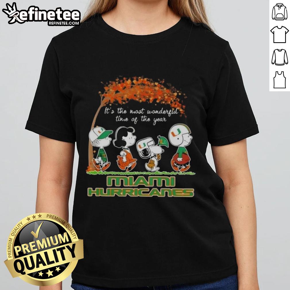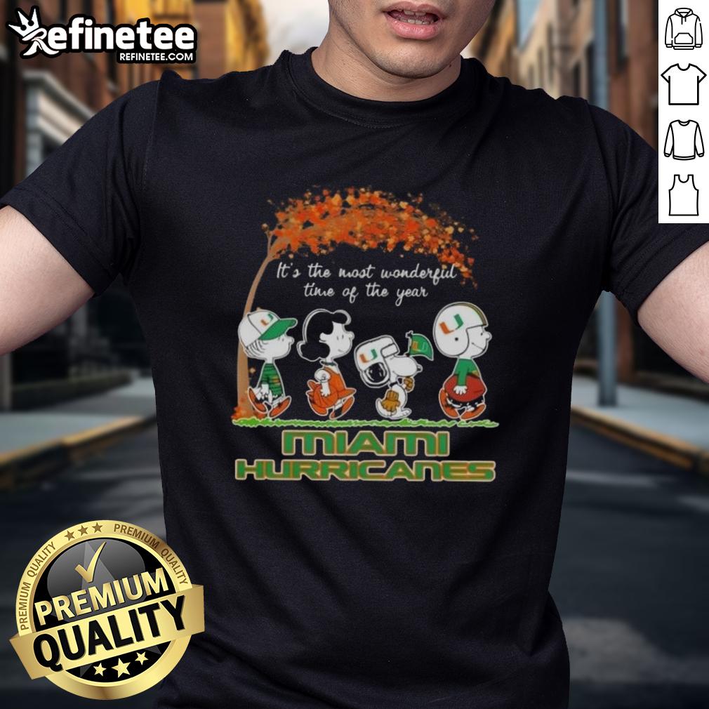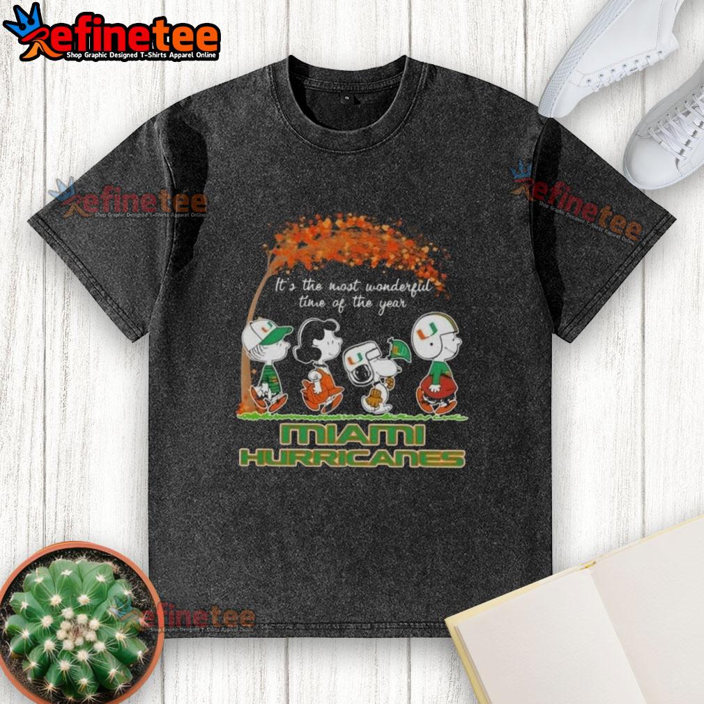 Premium Miami Hurricanes X Peanuts Snoopy And Friends Autumn It’s The Most Wonderful Time Of The Year T-Shirt