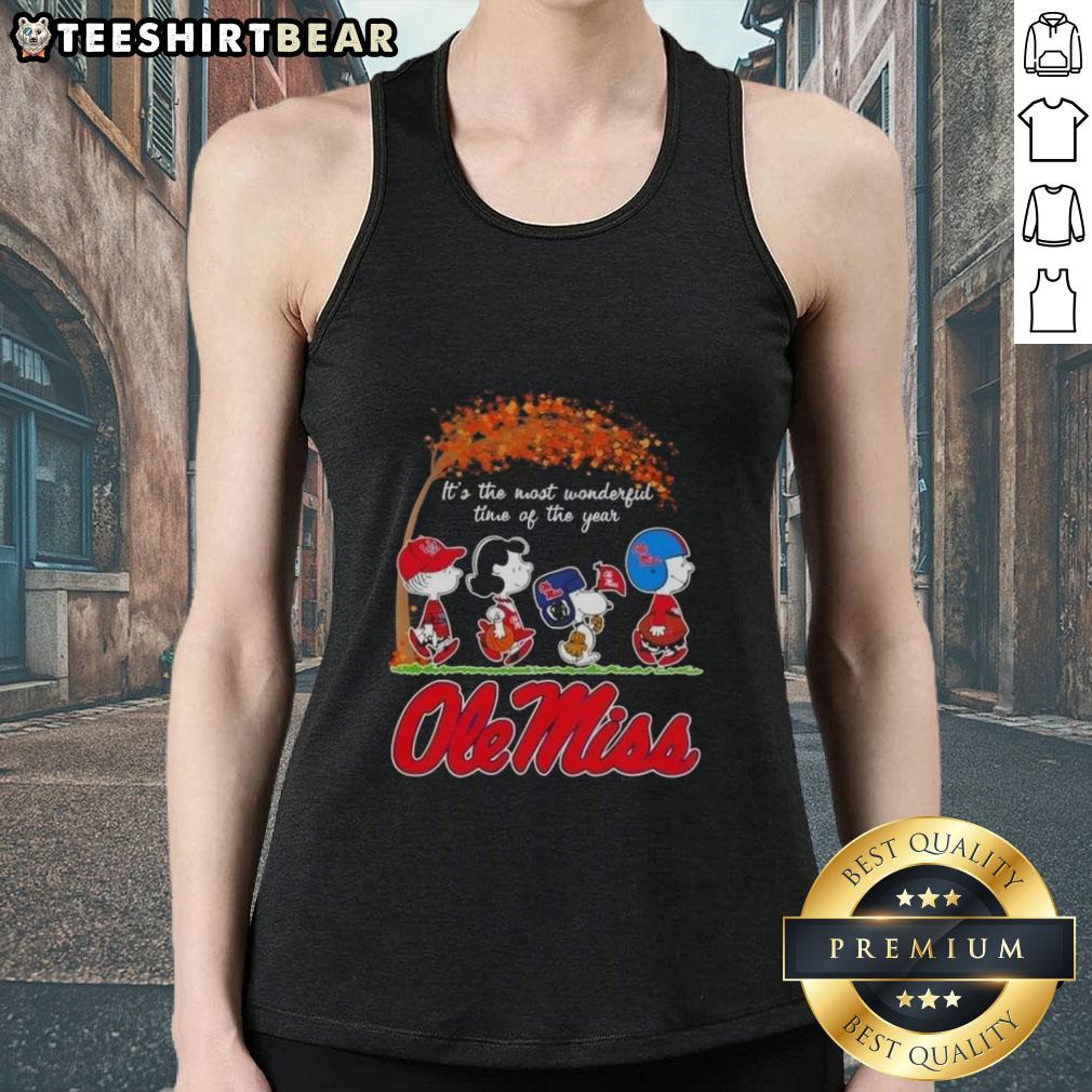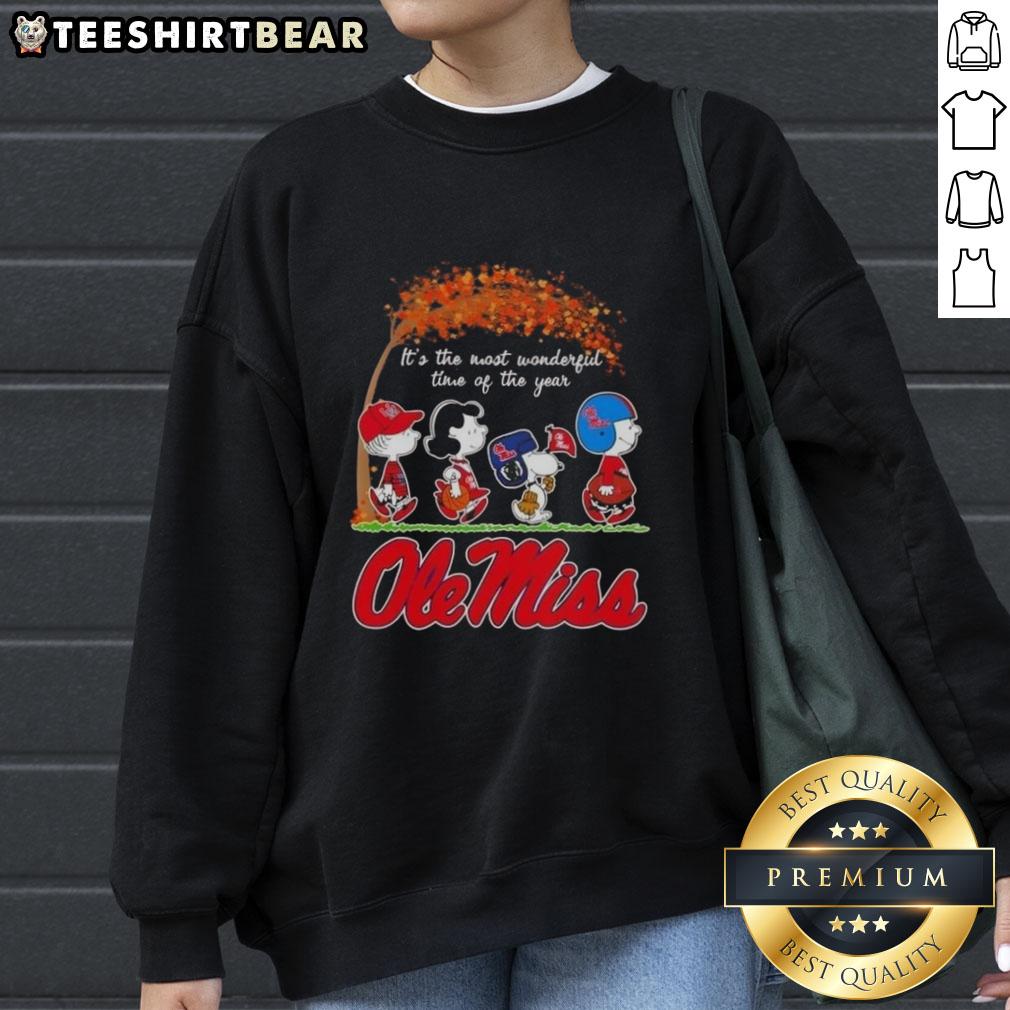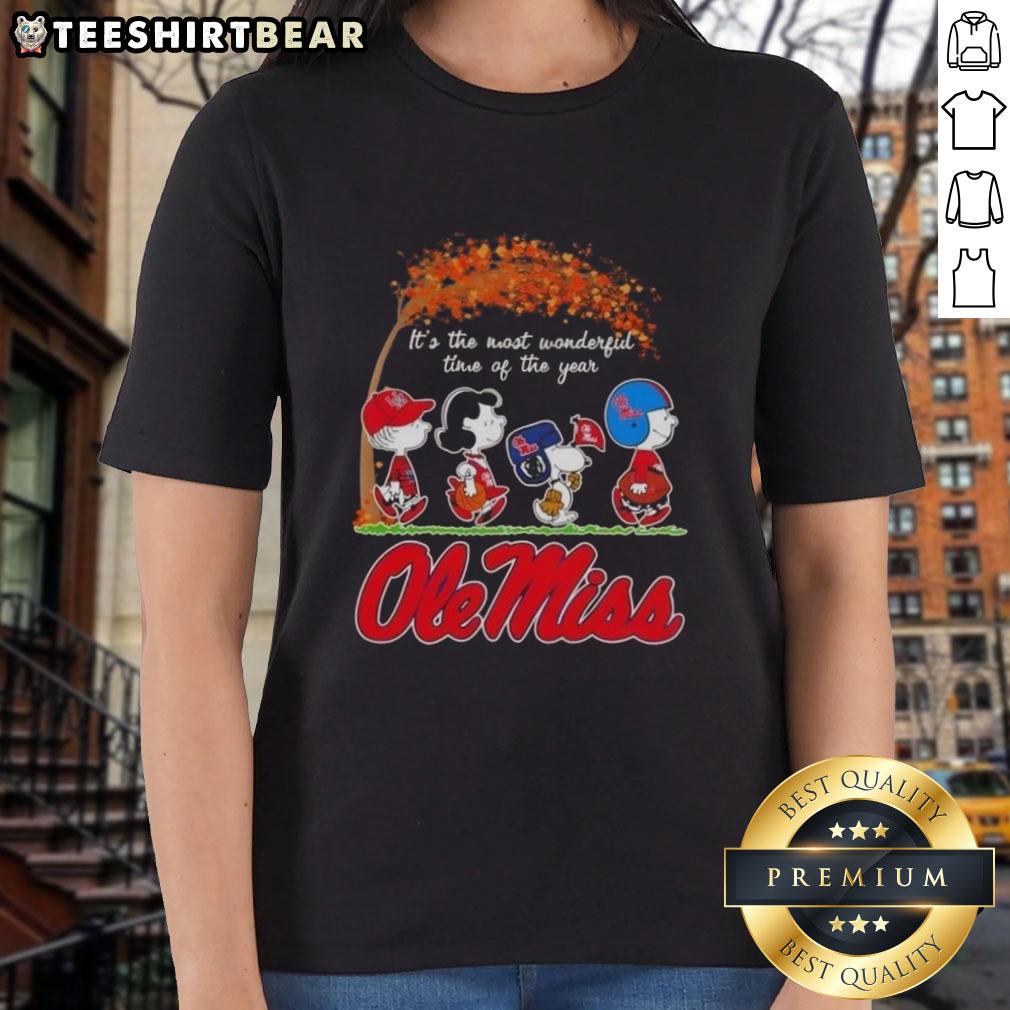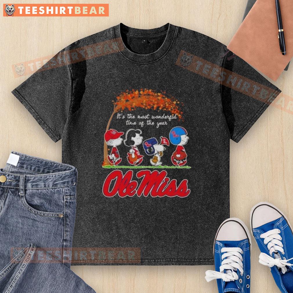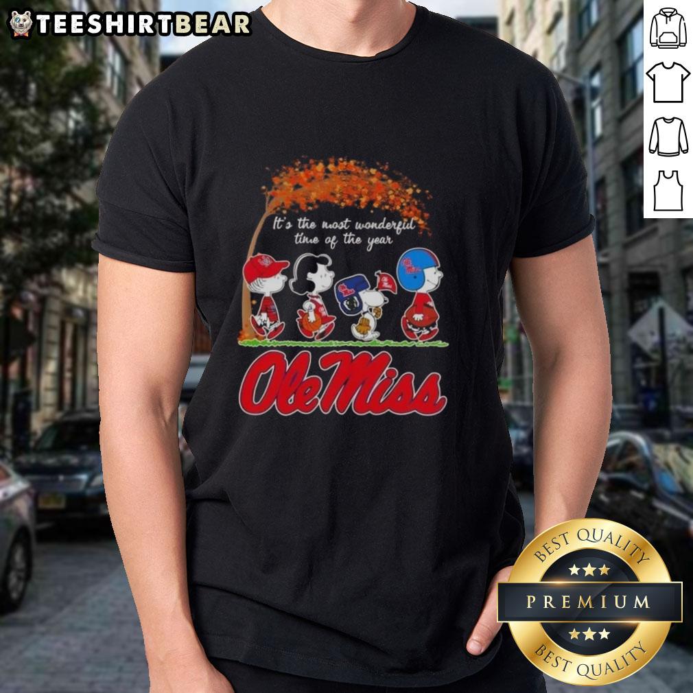 Premium Ole Miss Rebels X Peanuts Snoopy And Friends Autumn It’s The Most Wonderful Time Of The Year T-Shirt