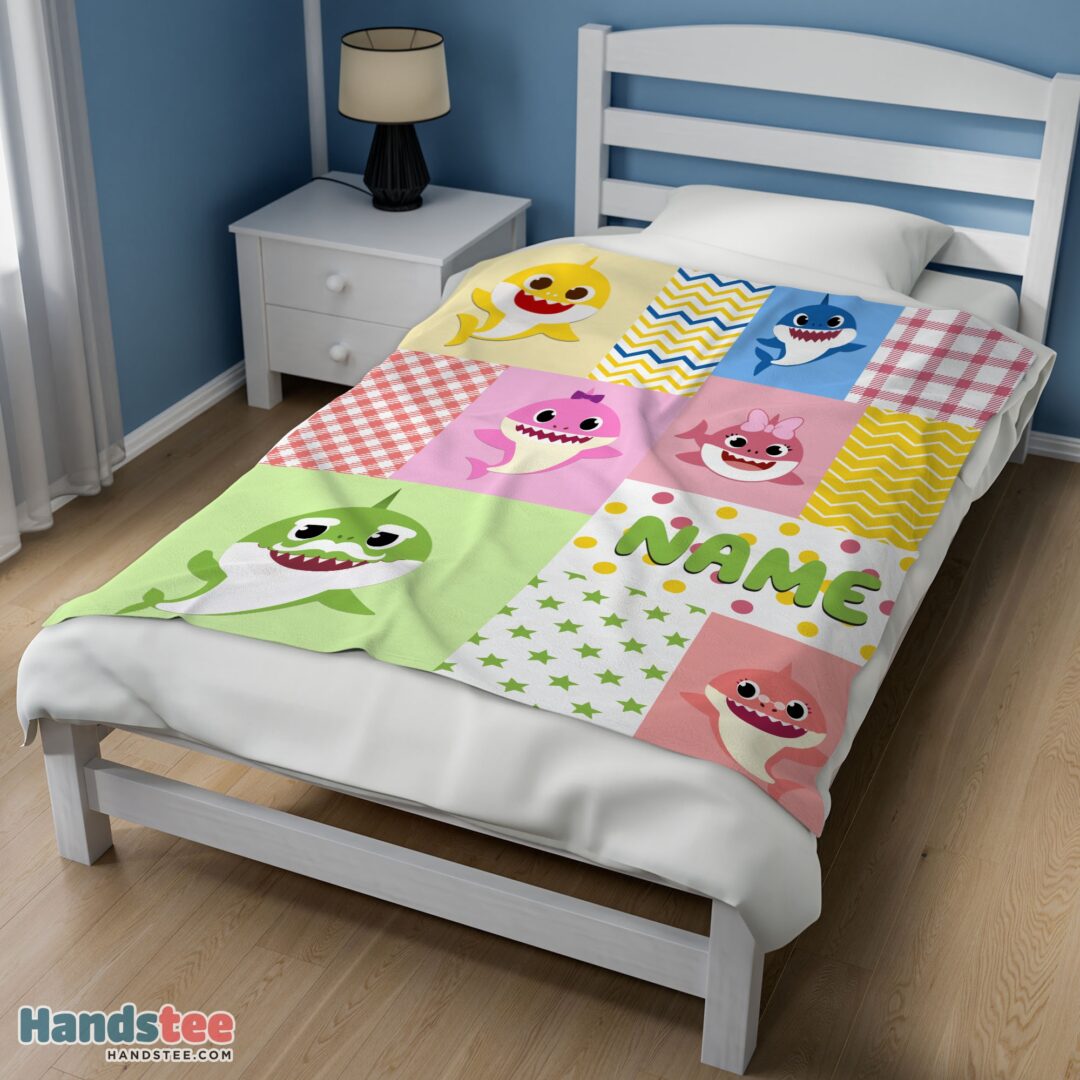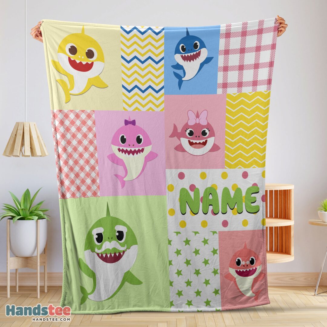 Premium Personalized Colorful Baby Shark Blanket Fleece Customized Blanket