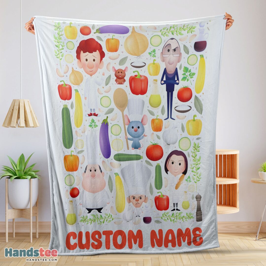 Premium Pixar Ratatouille Chief Cute Chibi Character Vegetable Blanket Fleece Customized Blanket