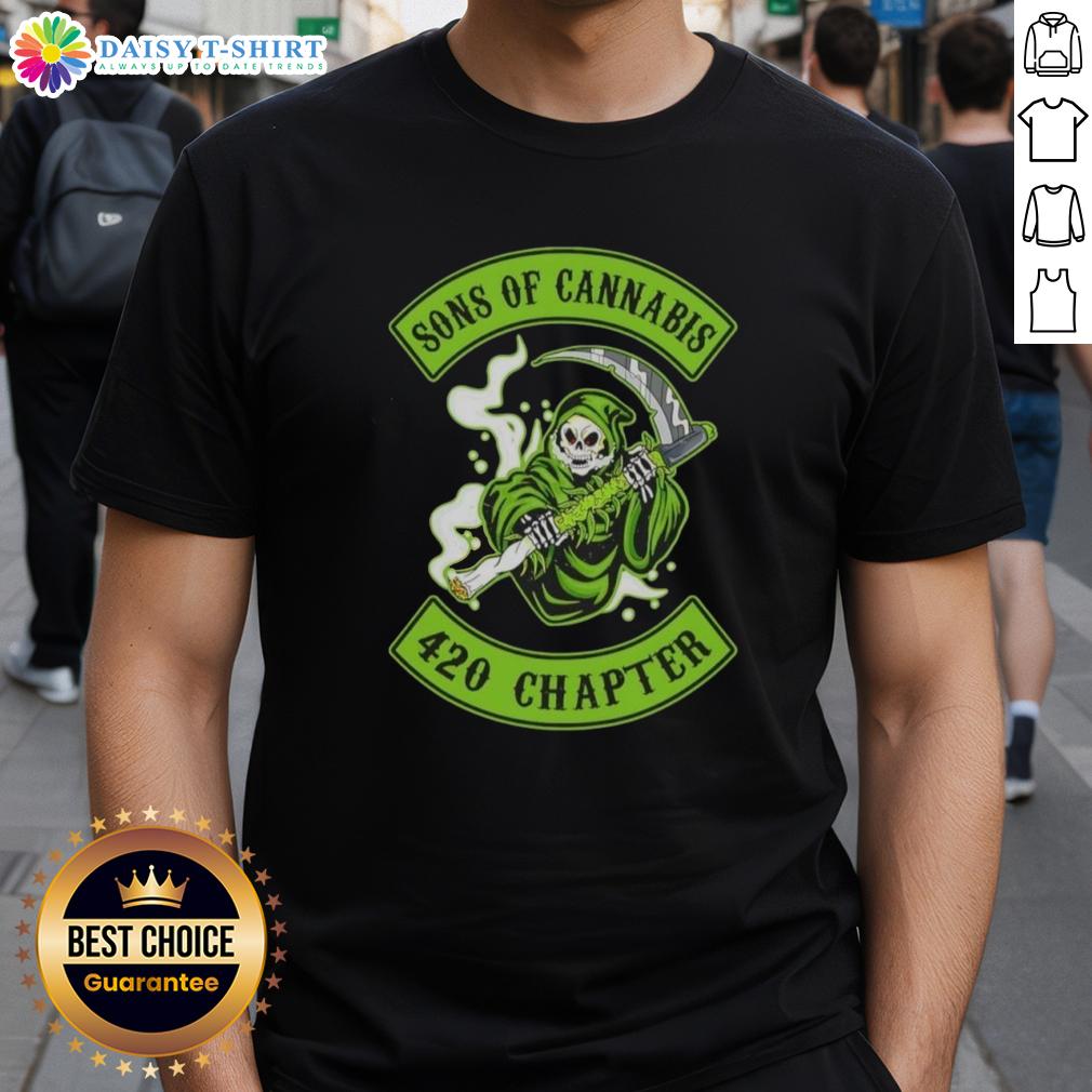Premium Skull Son Of Cannabis 420 Chapter Grim Reaper Logo T-Shirt