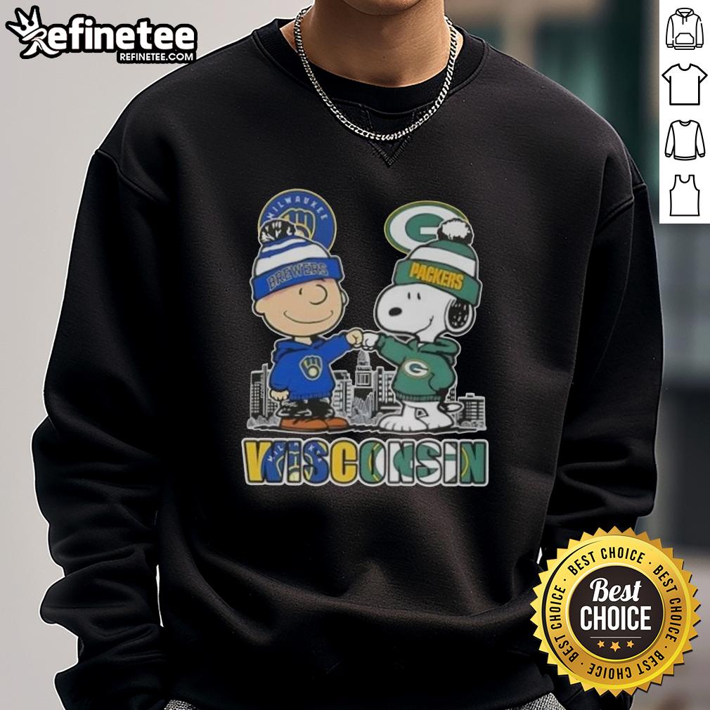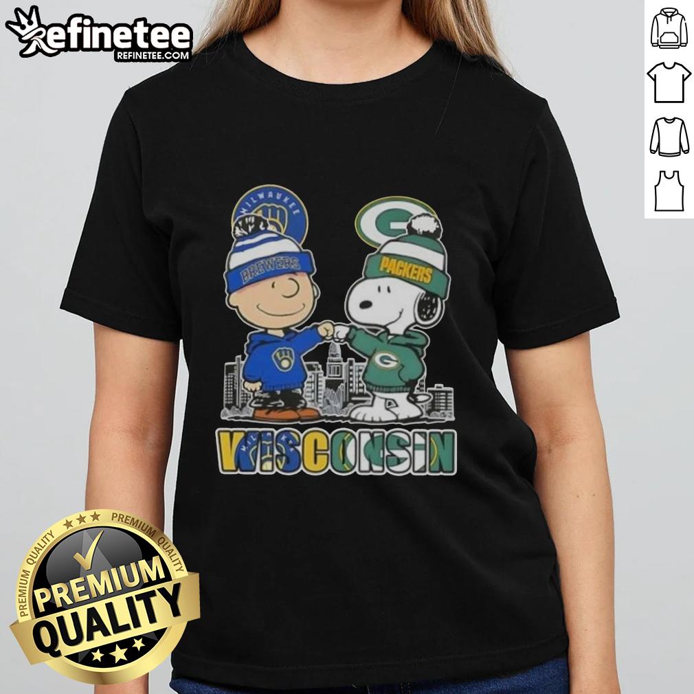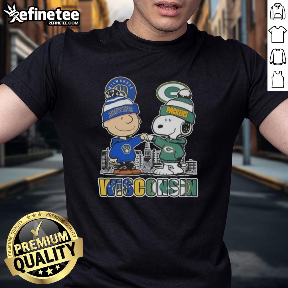 Premium Snoopy And Charlie Brown Wisconsin Sports Milwaukee Brewers X Green Bay Packers Skyline T-Shirt