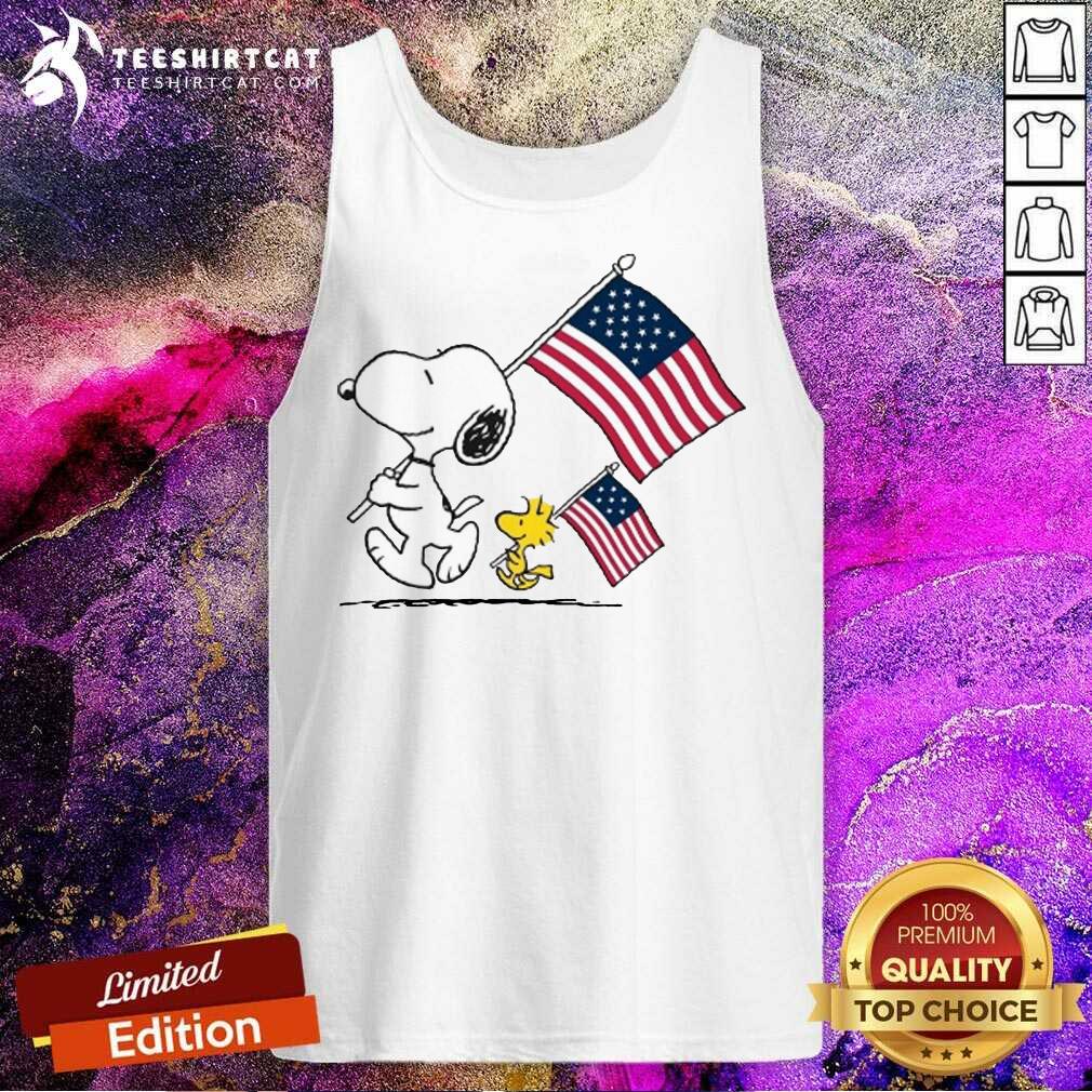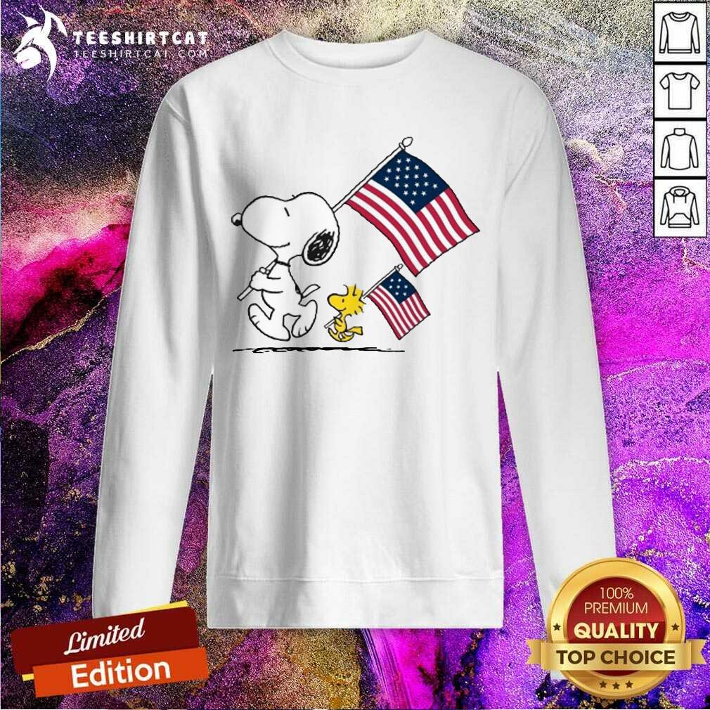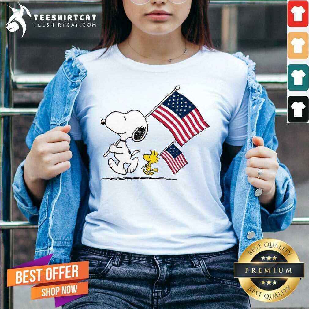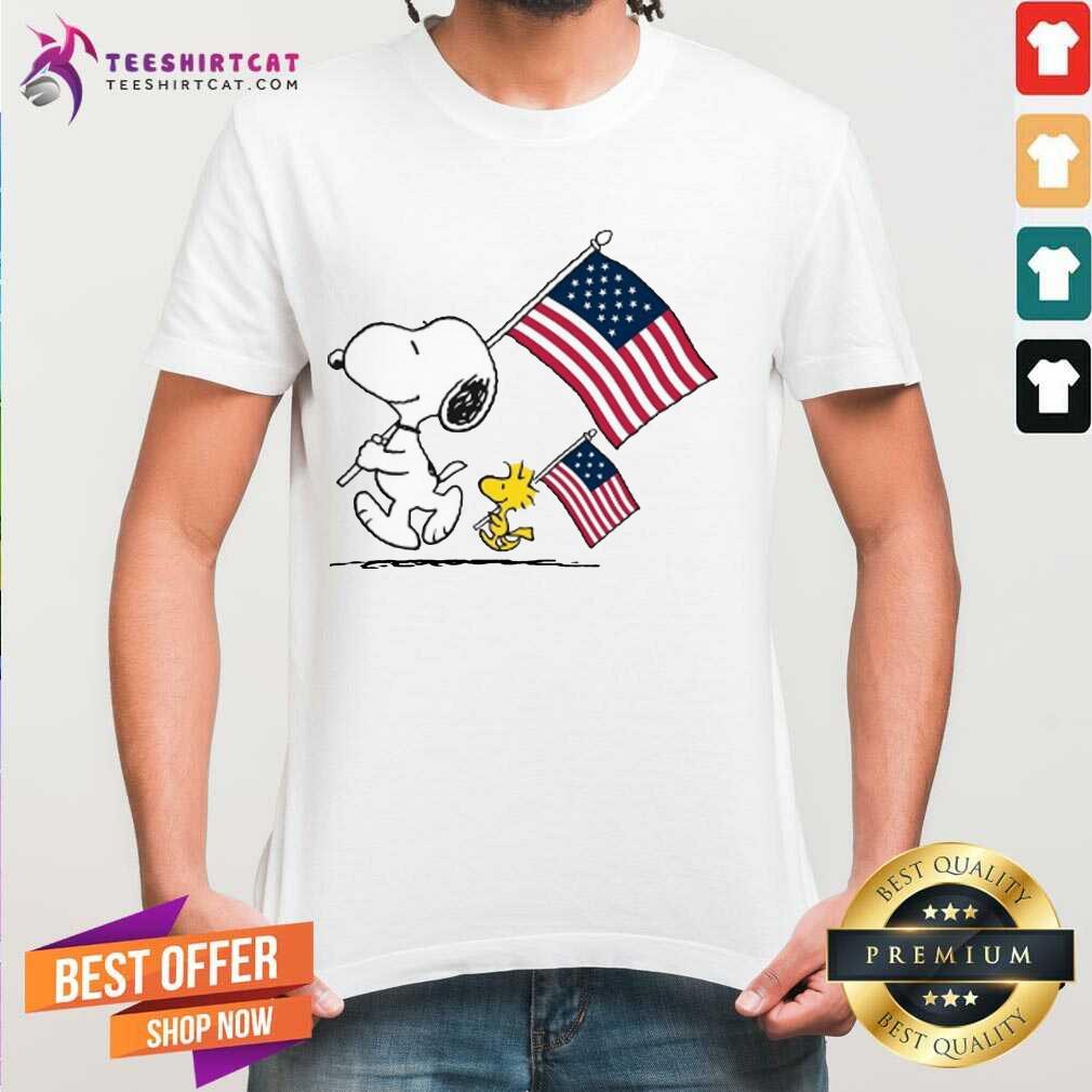 Premium Snoopy And Woodstock Holding American Flag 4th Of July Shirt