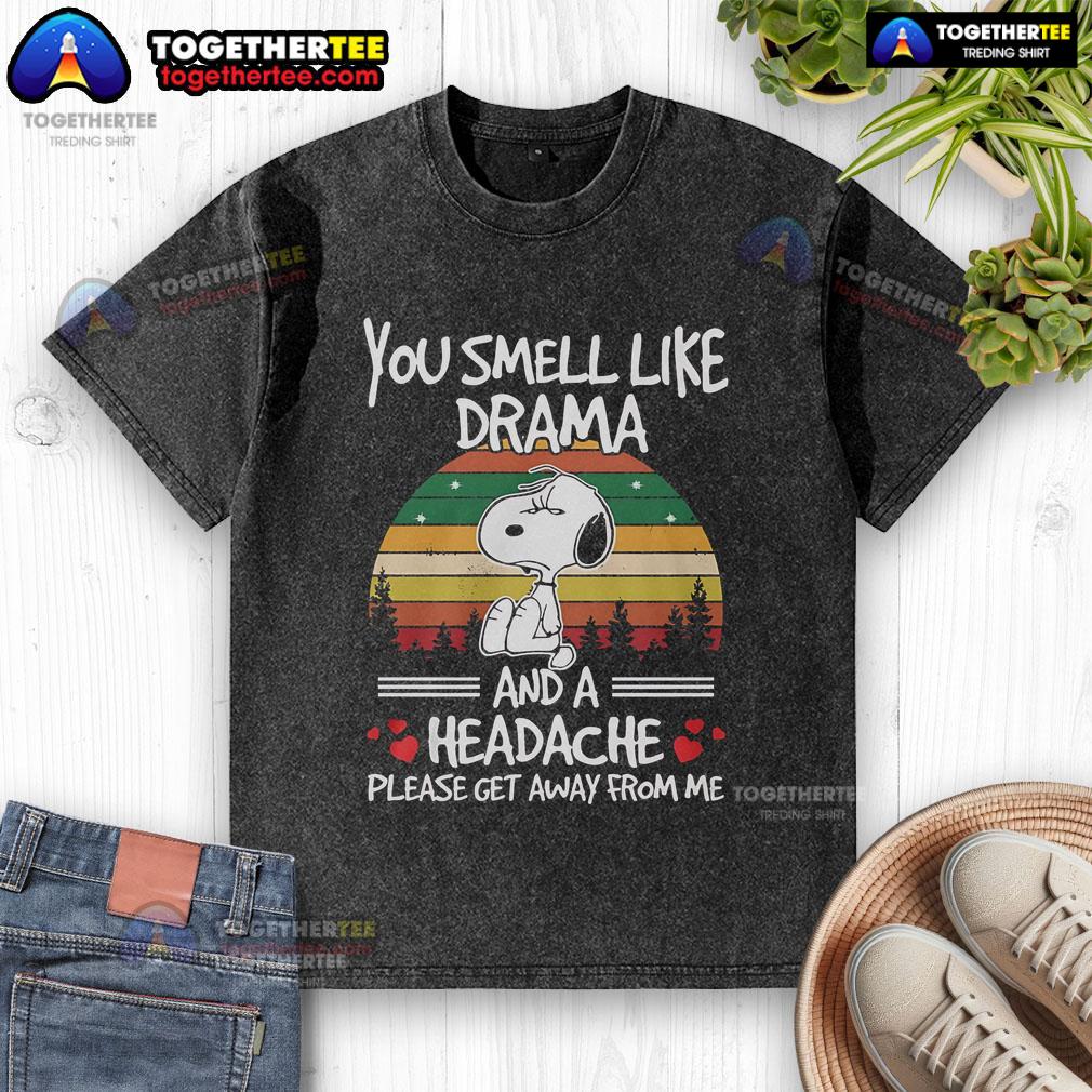 Premium Snoopy You Smell Like Drama And A Headache Vintage Sunset T-Shirt