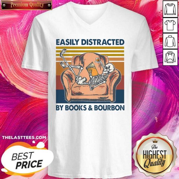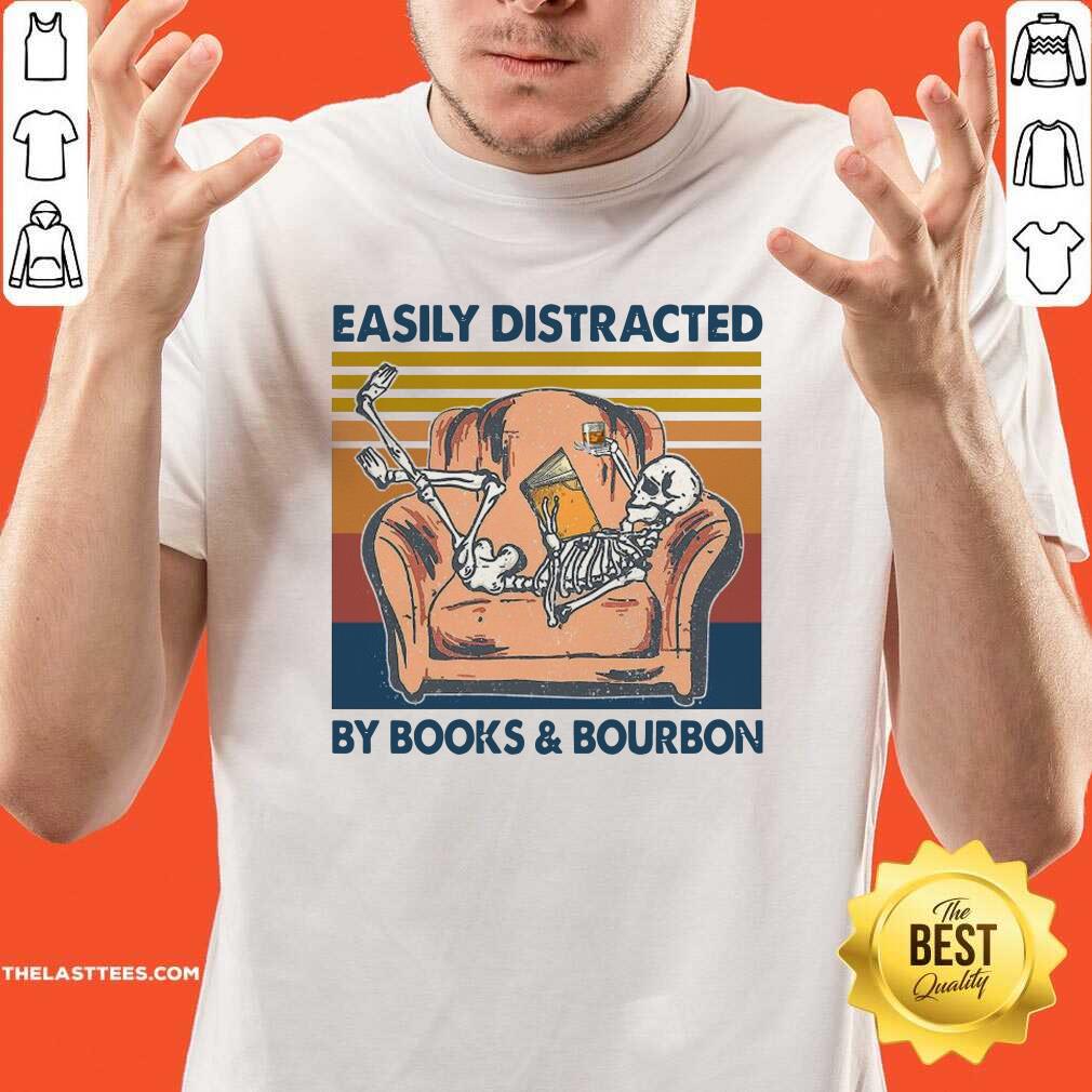 Premium Top Skeleton Easily Distracted By Book And Bourbon 2021 Shirt