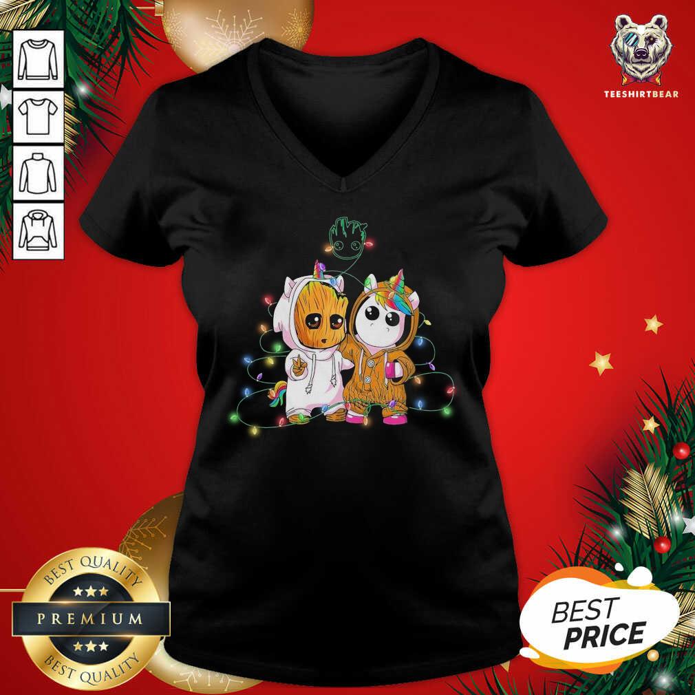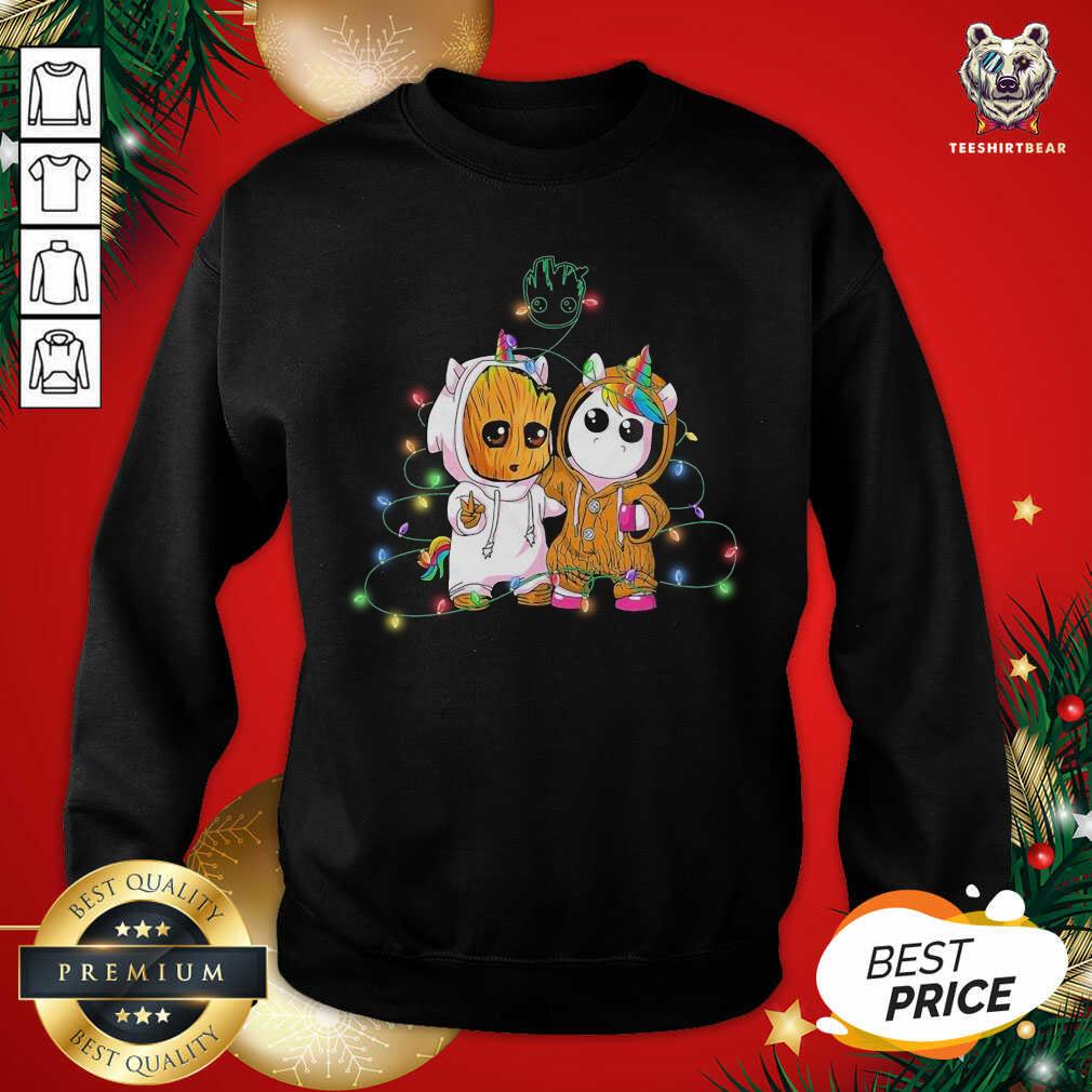 Pretty Baby Groot And Baby Unicorn Merry Christmas Shirt
