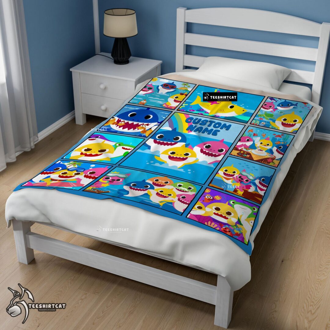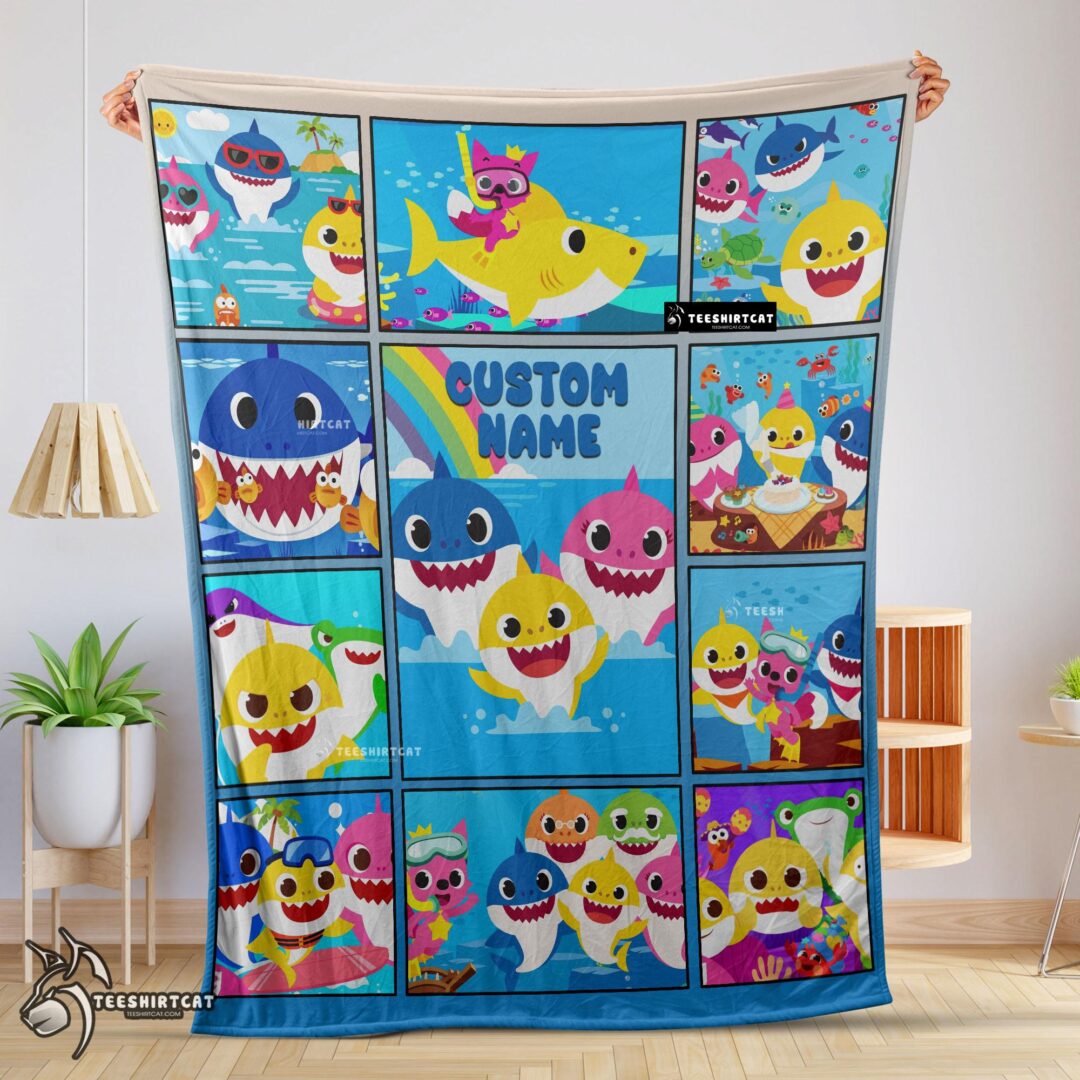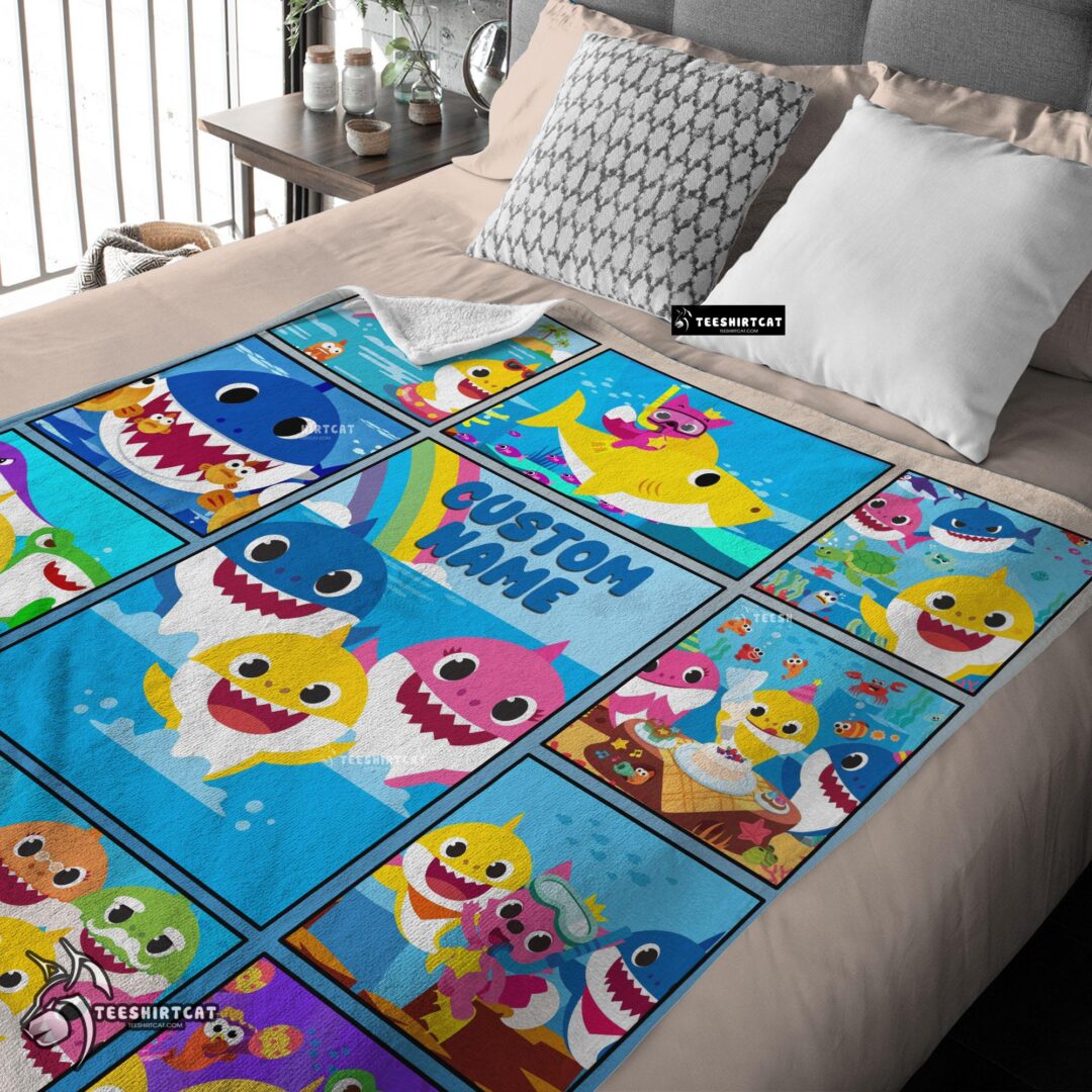 Pretty Baby Shark Family & Friends Collage Blanket Fleece Customized Blanket
