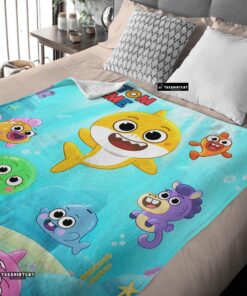 Pretty Baby Shark & Friends Poster Rainbow Text Blanket Fleece Customized Blanket