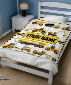 Pretty Cartoon Construction Trucks With Friends Blanket Fleece Customized Blanket