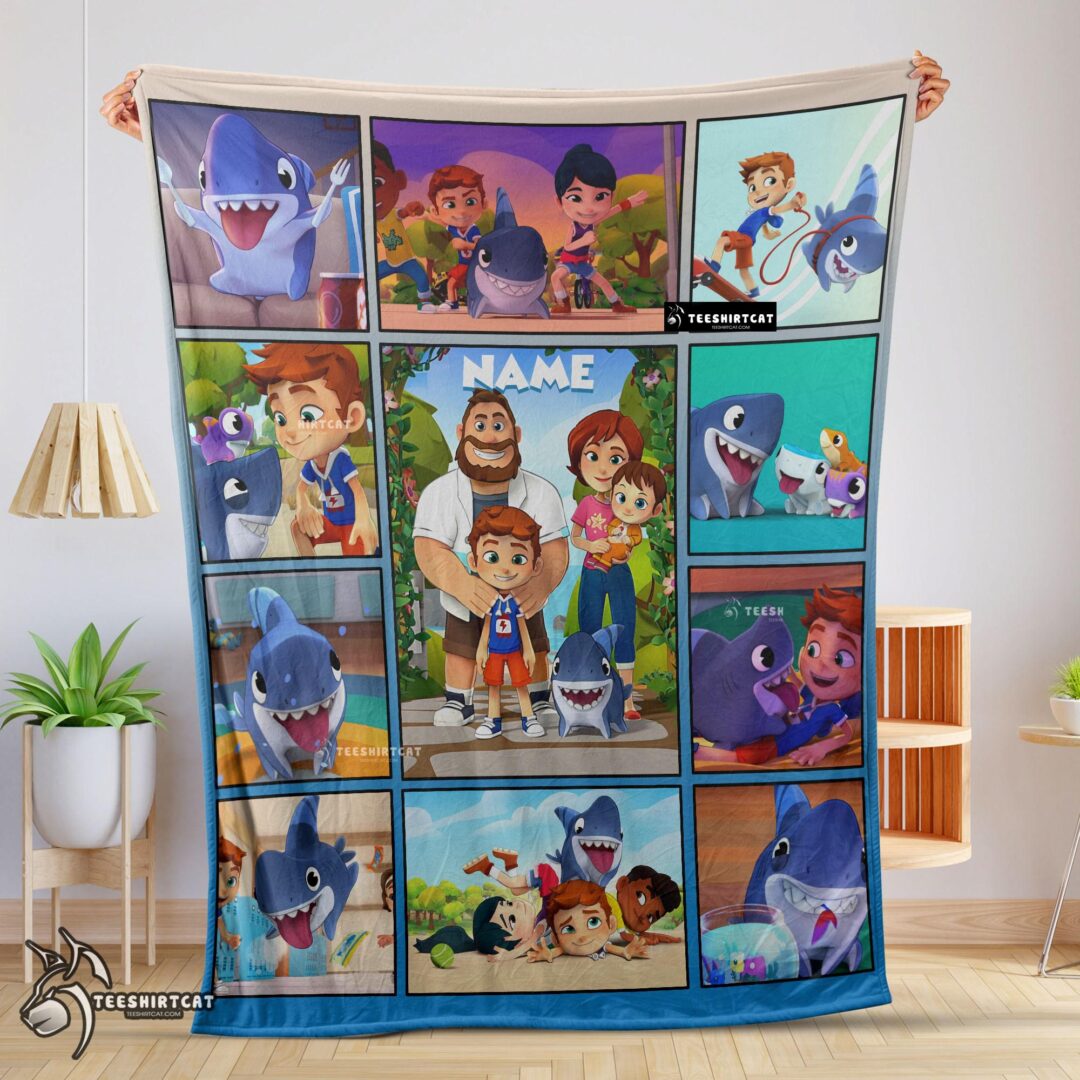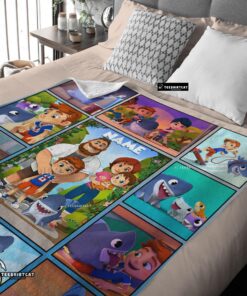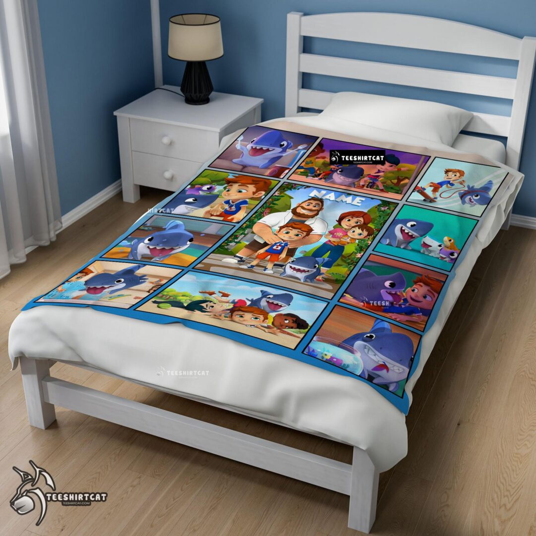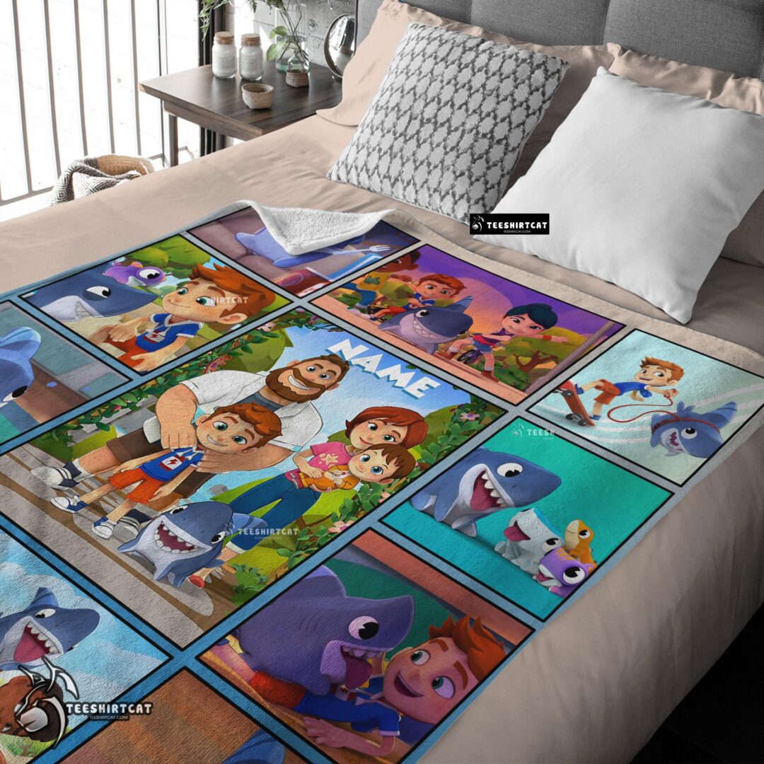 Pretty Cartoon Sharkdog With Family Blanket Fleece Customized Blanket
