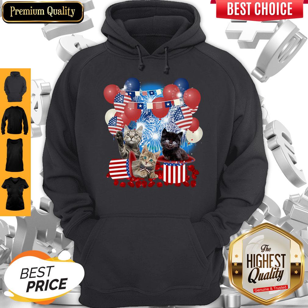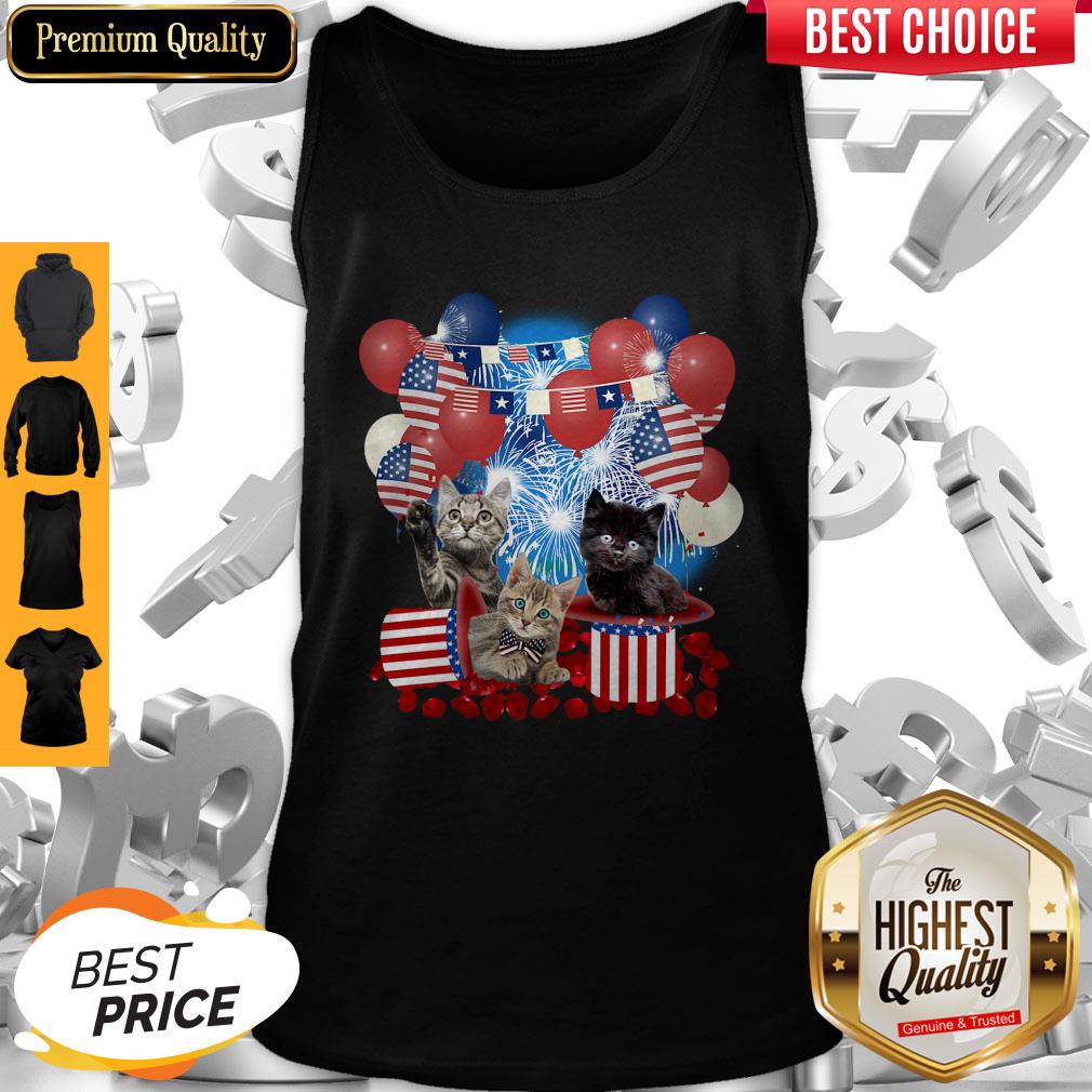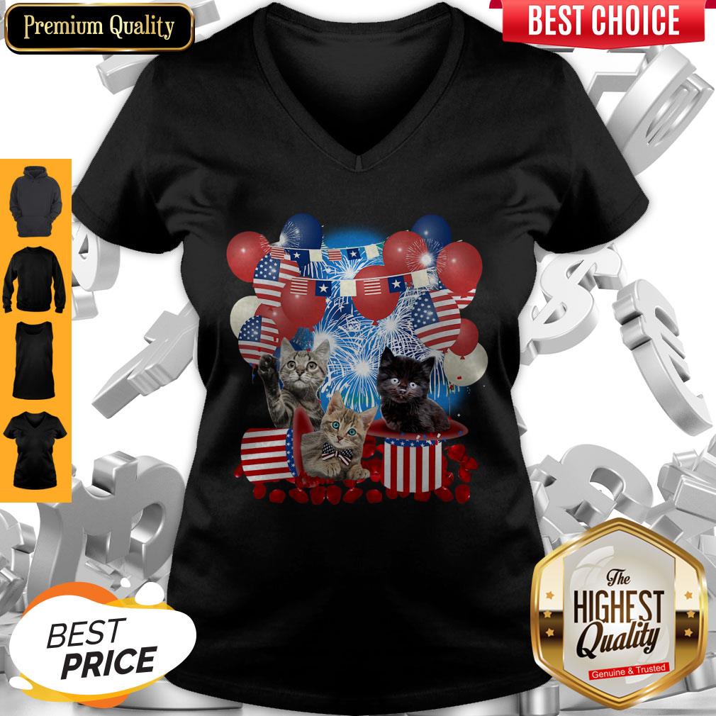 Pretty Cats Balloons Fireworks Independence Day 4th Of July Shirt