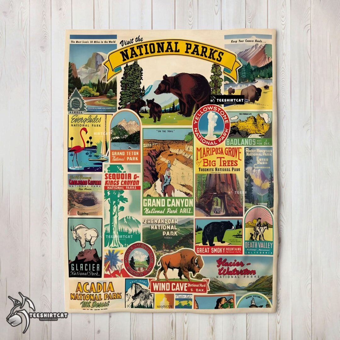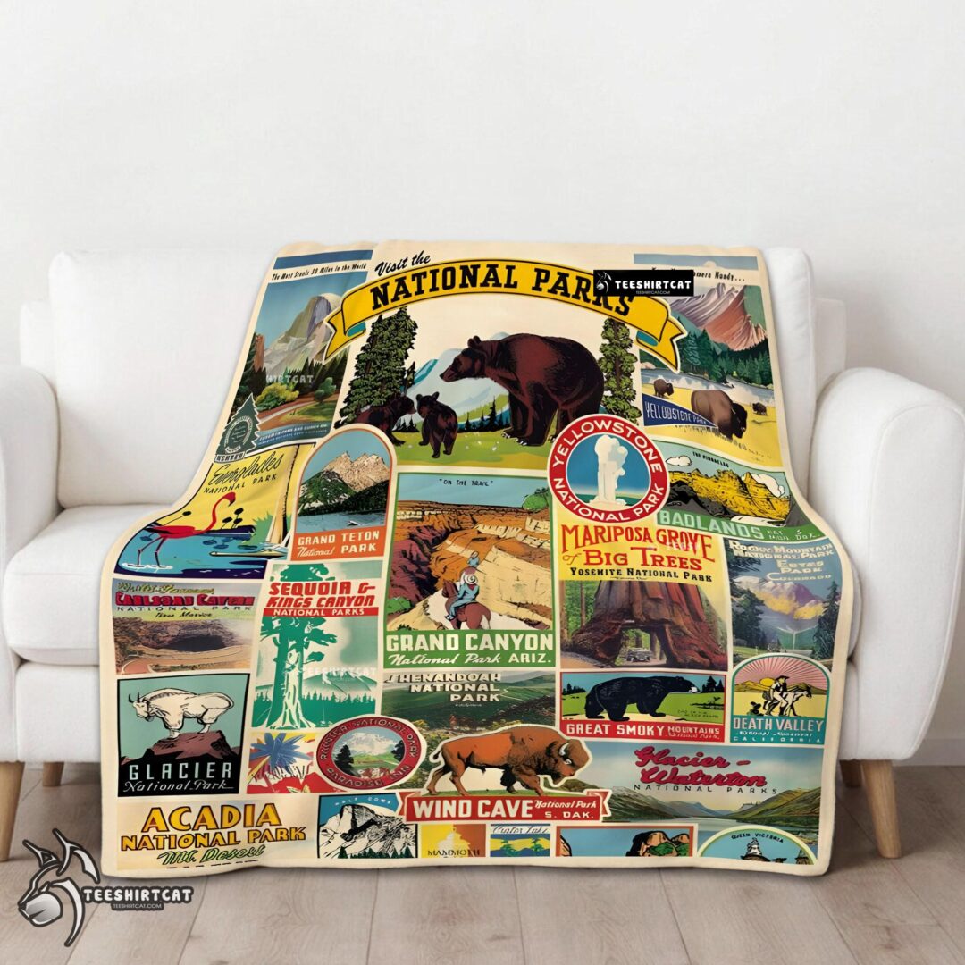 Pretty Cavallini Visit The National Parks Blanket Fleece Customized Blanket
