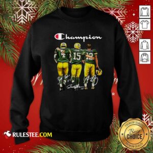 Pretty Champion Green Bay Packer Brett Favre 4 Bart Starr 15 Aaron Rodgers 12 Signatures Shirt