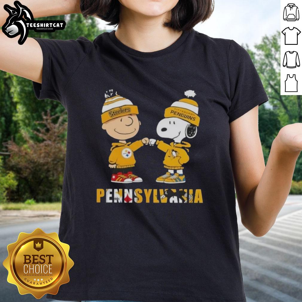 Pretty Charlie Brown Fist Bump Snoopy Pennsylvania City Sports Pittsburgh Steelers X Penguins T-Shirt