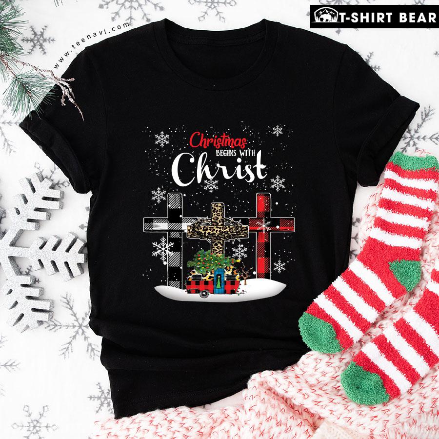 Pretty Christmas Begins With Christ Leopard T-Shirt