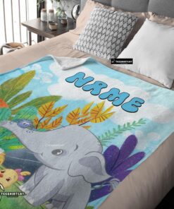 Pretty Cute Elephant Safari Animal For Boys Customized Blanket