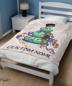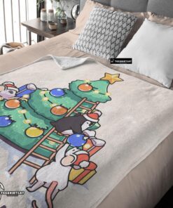 Pretty Cute Mice & Penguin Cartoon Christmas Tree Blanket Fleece Customized Blanket