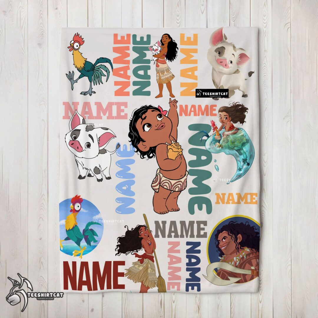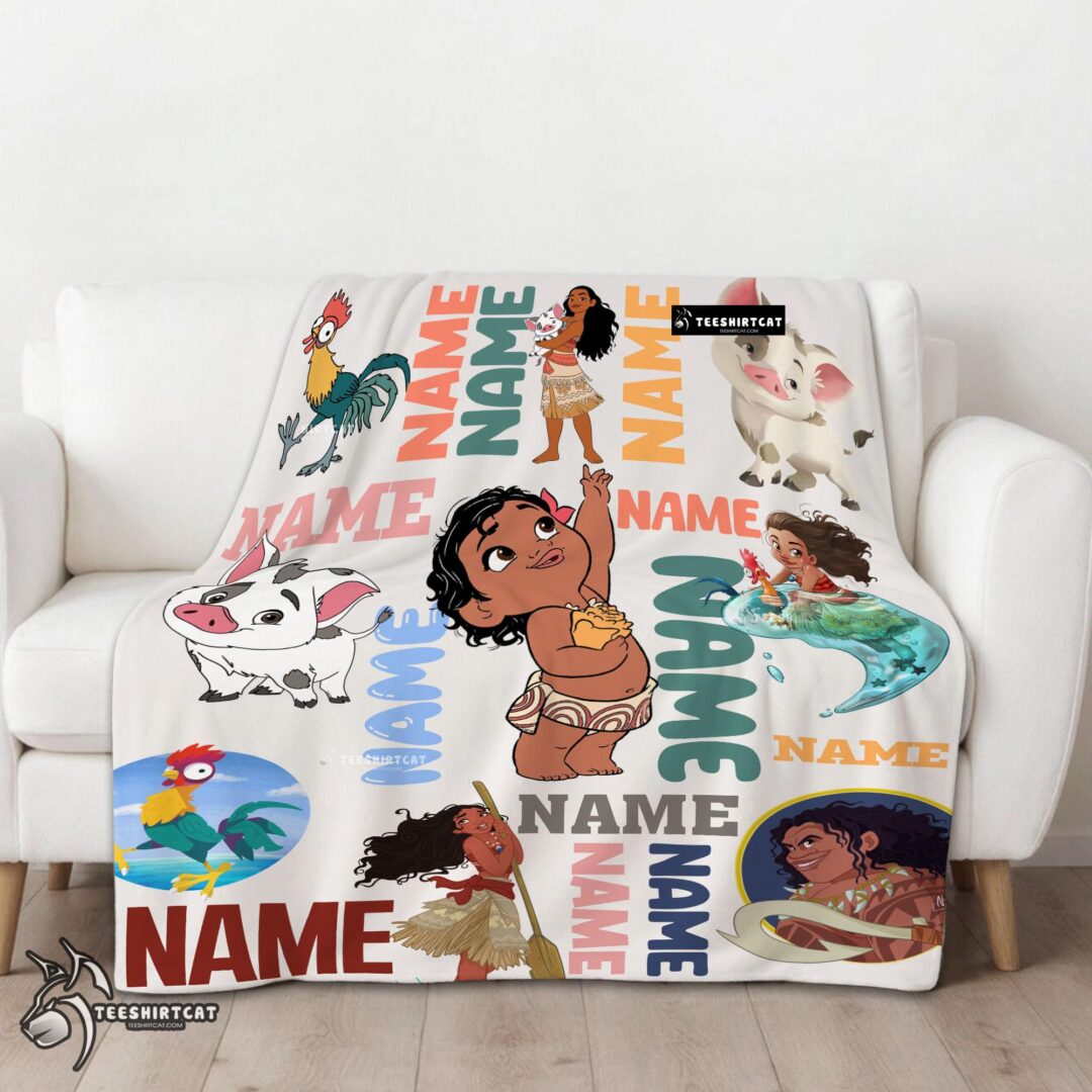 Pretty Disney Cartoon Moana With Friends Blanket Fleece Customized Blanket