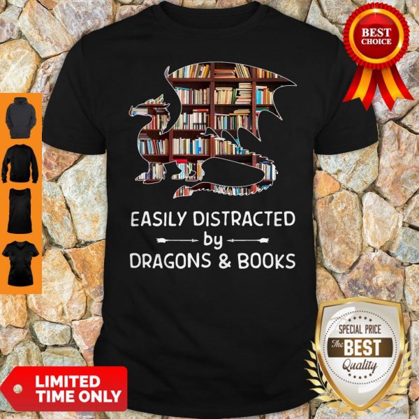Pretty Dragon And Books Easily Distracted Shirt