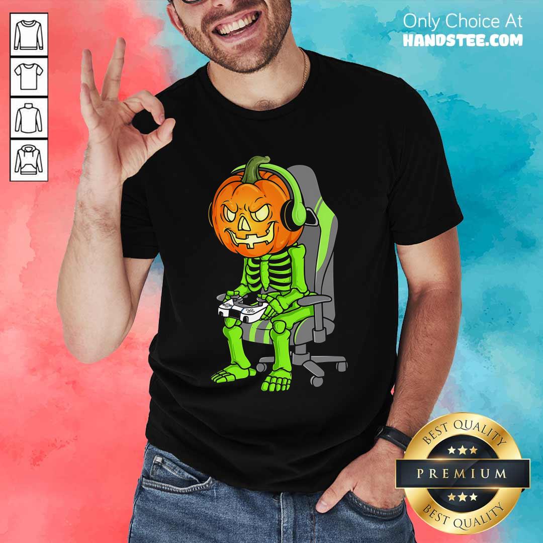 Pretty Gaming Halloween Skeleton Jack O Lantern Gamer T-Shirt