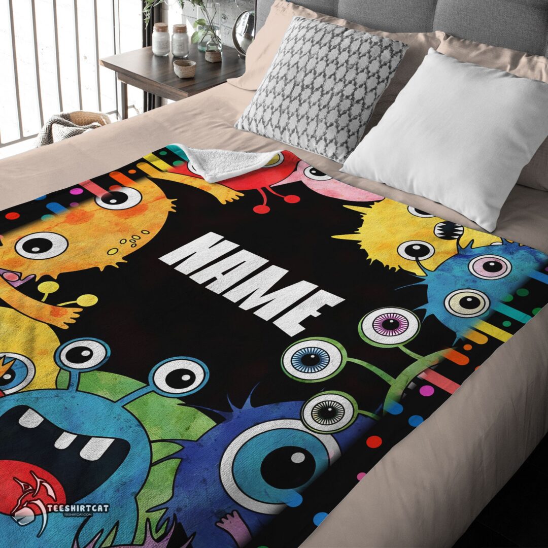 Pretty Happy Monster Coloring Blanket Fleece Customized Blanket