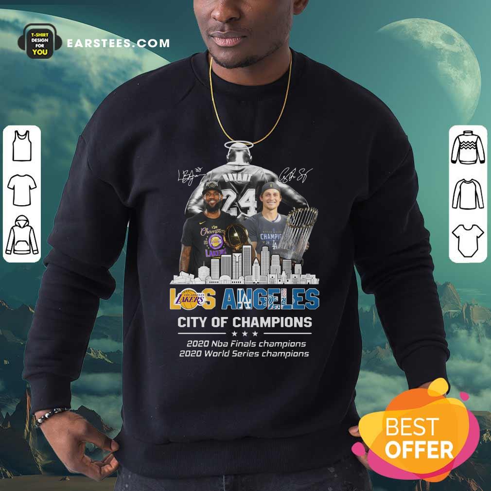 Pretty Kobe Bryant LeBron James And Corey Seager Los Angeles Lakers Dodgers City Of Champions 2020 Signatures Shirt