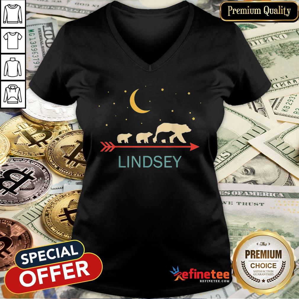 Pretty Lindsey Name Gift Personalized Mama Bear With 3 Cubs Shirt