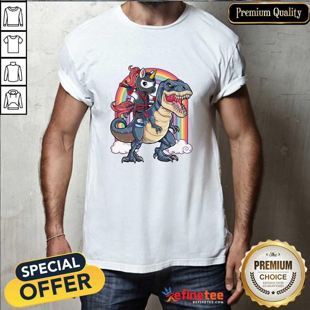 Pretty Ninja Unicorn Riding Dinosaur T Rex Rainbow T-Shirt