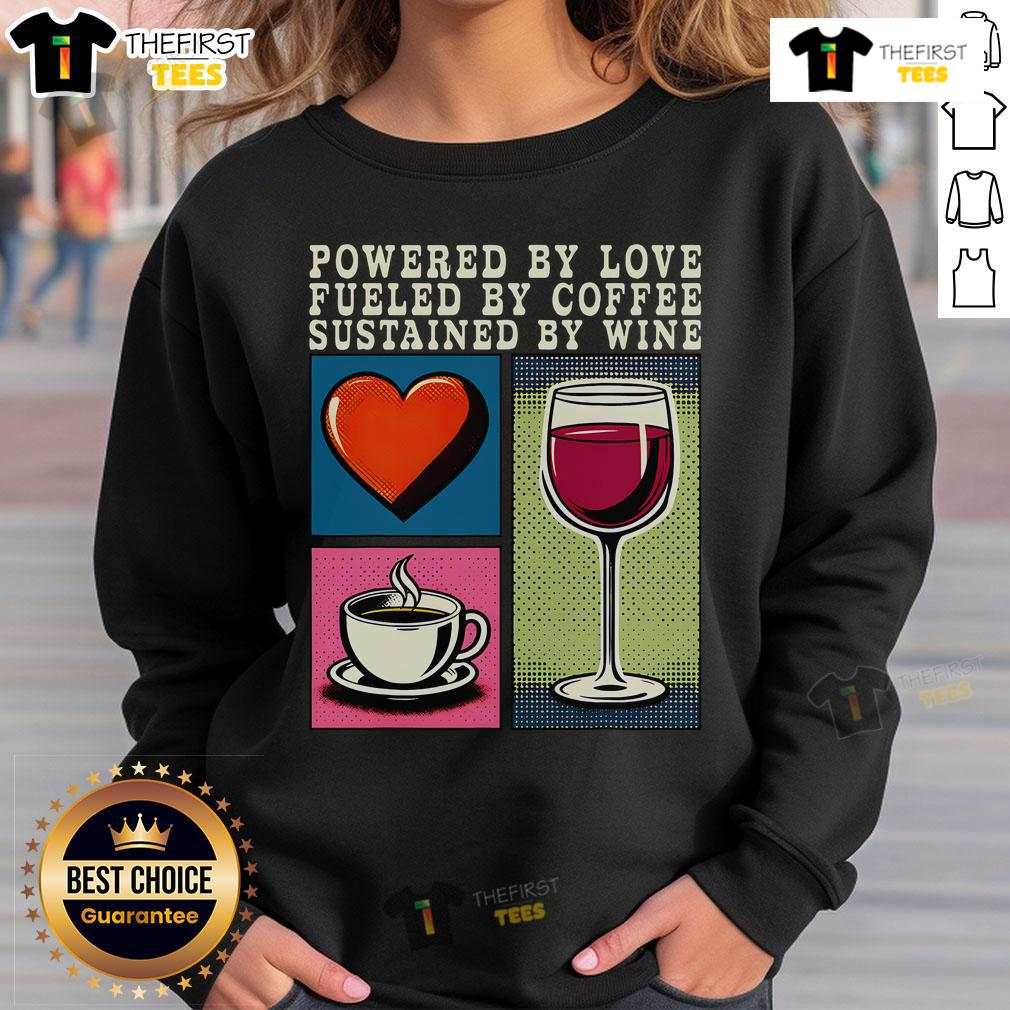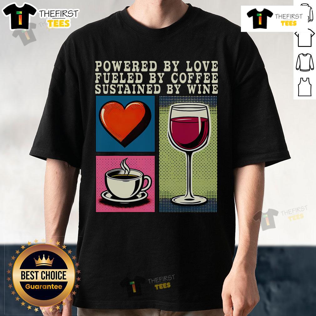 Pretty Powered By Love Fueled By Coffee Sustained By Wine T-Shirt