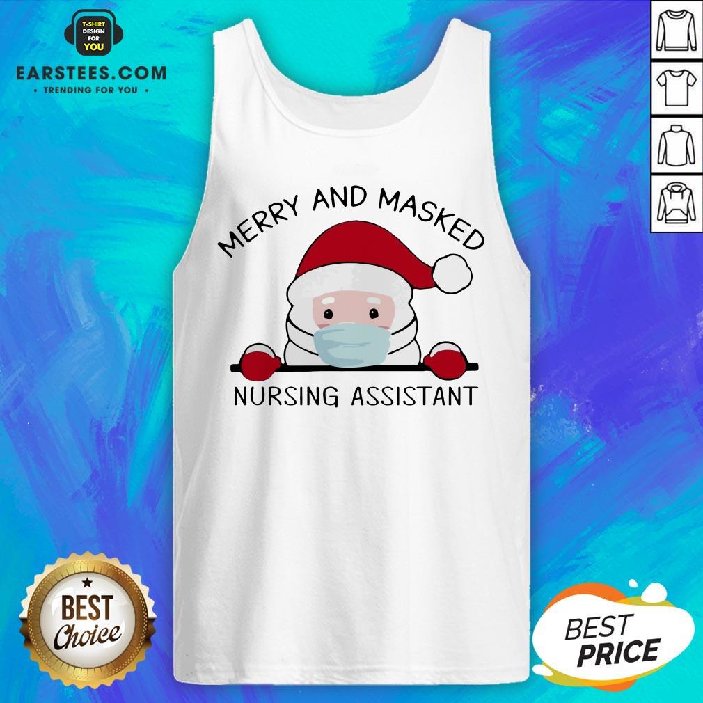 Pretty Santa Face Mask Merry And Masked Nursing Assistant Christmas Shirt