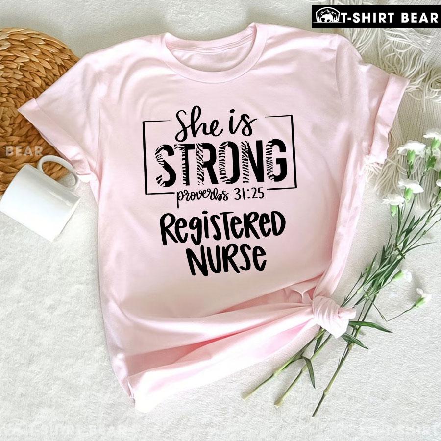 Pretty She Is Strong Proverbs 31:25 Registered Nurse T-Shirt