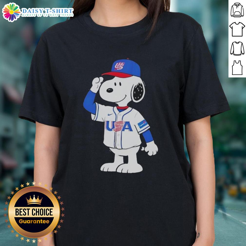 Pretty Snoopy USA Baseball Jersey Salute Graphic T-Shirt