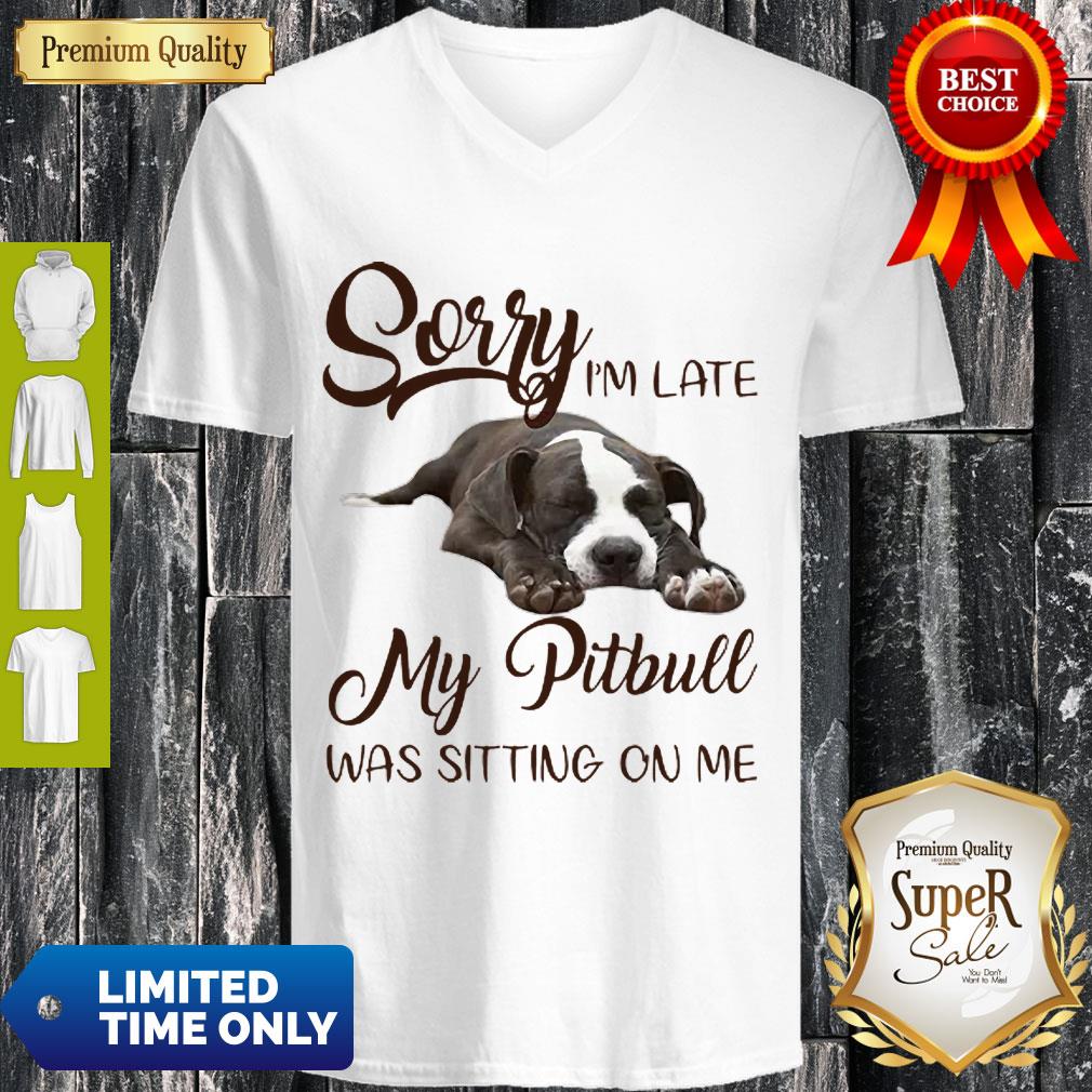 Pretty Sorry I’m Late My Pitbull Was Sitting On Me Dog Lovers Shirt